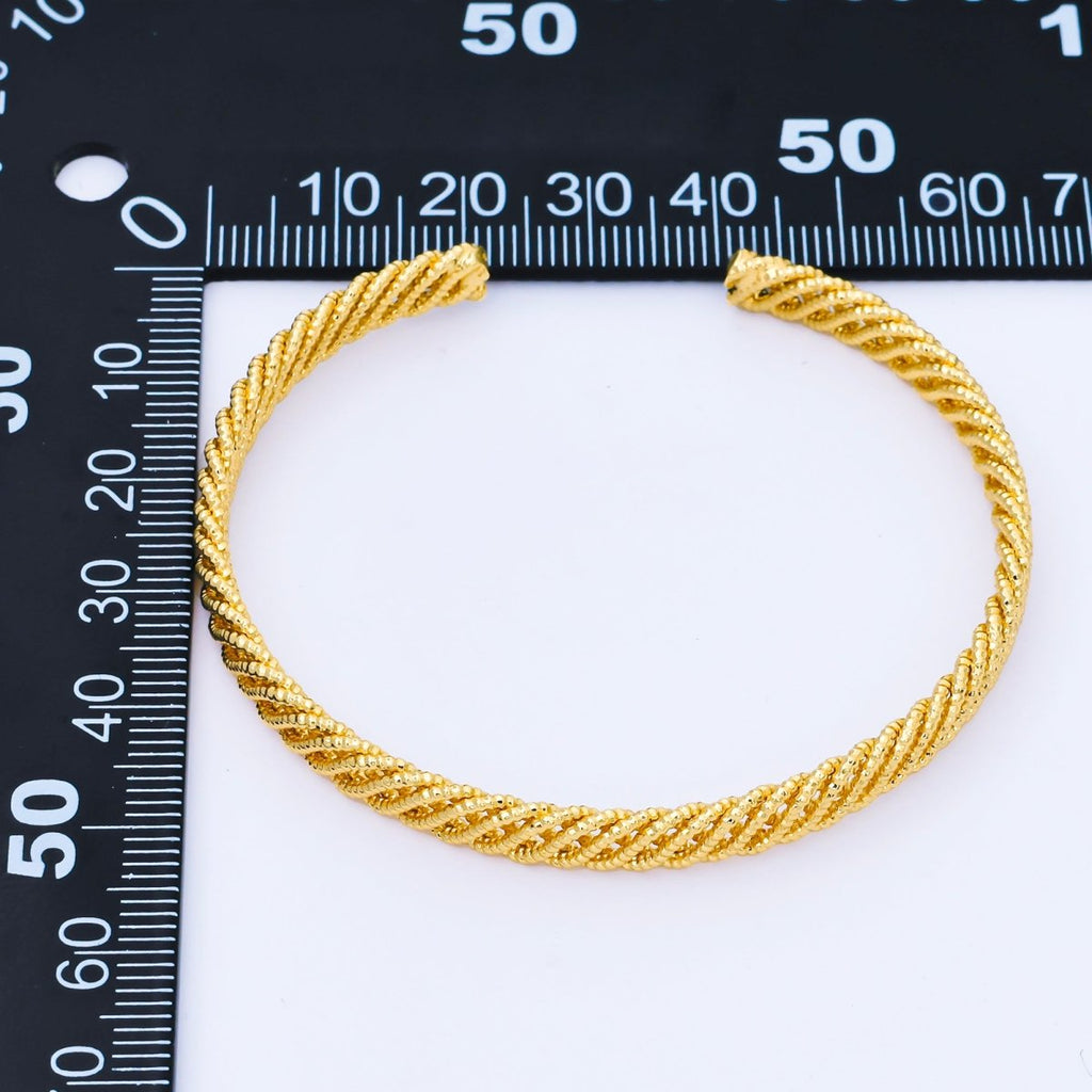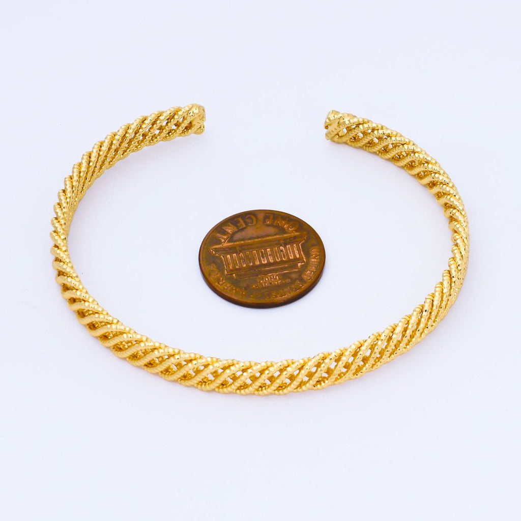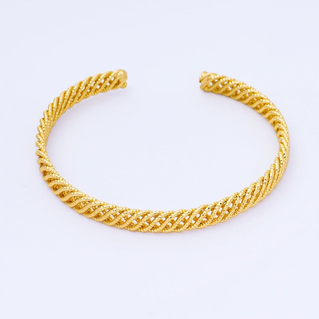 24K Gold Filled Minimalist Twisted Woven Cuff Bangle Bracelet | WA-1686