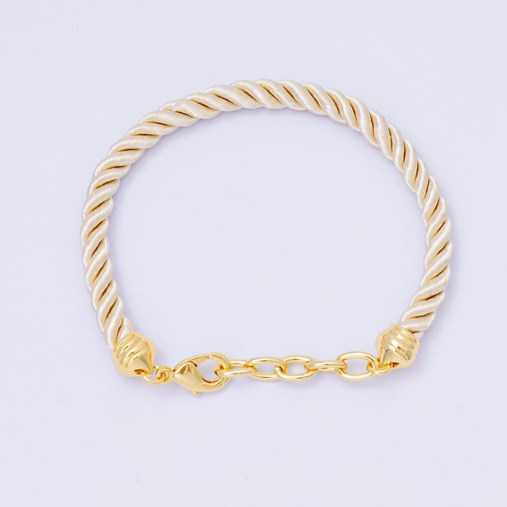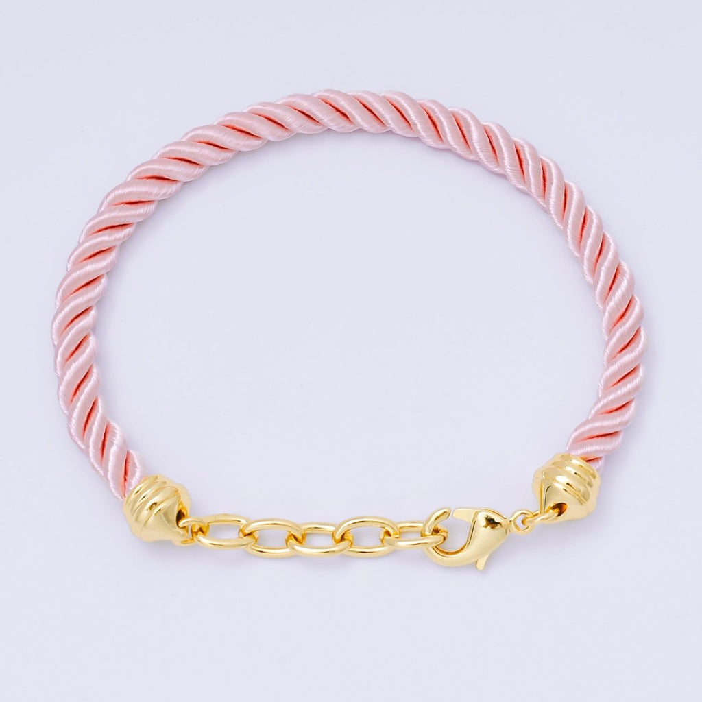 24K Gold Filled Pink & Beige Twisted Braided Cord Chain Bracelet | WA-3831 - WA-3833