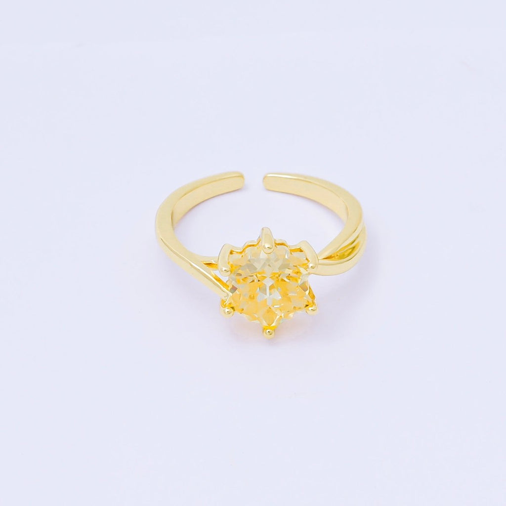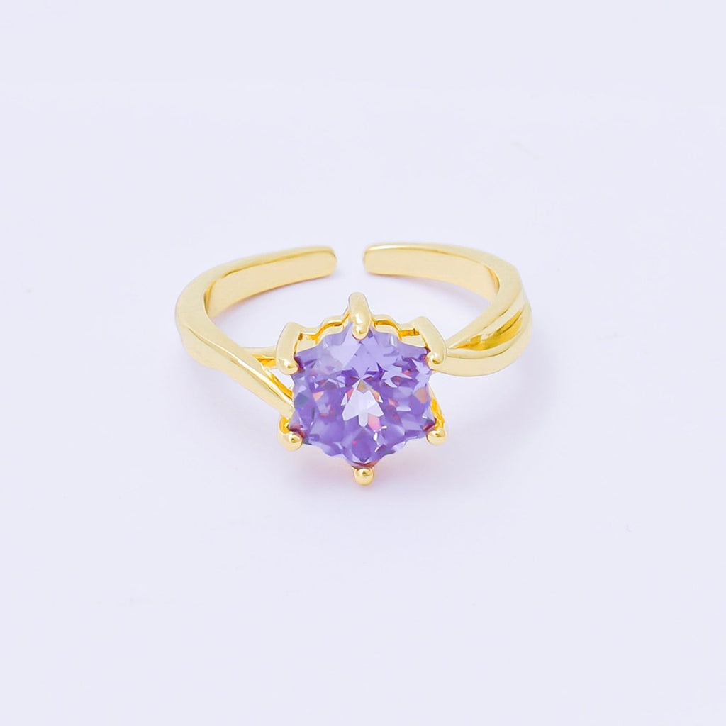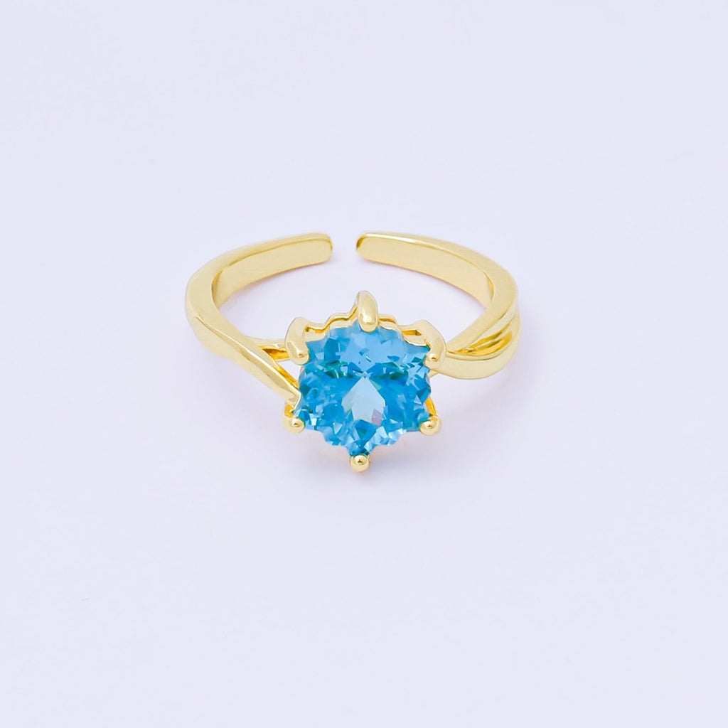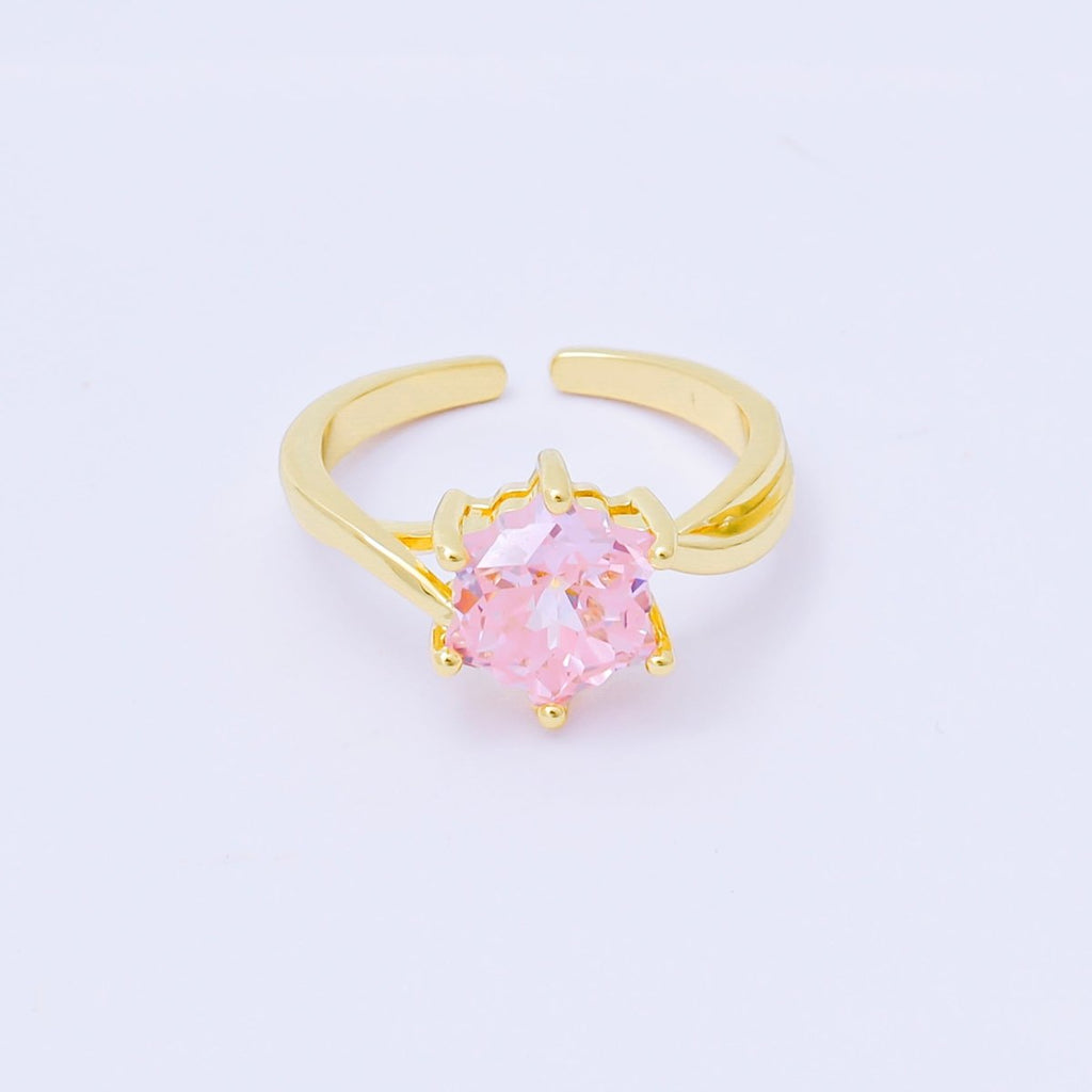 24K Gold Filled Pink, Blue, Green Flower-Shaped CZ Minimalist Solitaire Ring | O2008 O2011 O2010 O2017 O2018 O2107 O2119 O2121 O2149 O2165 O2200 O2209