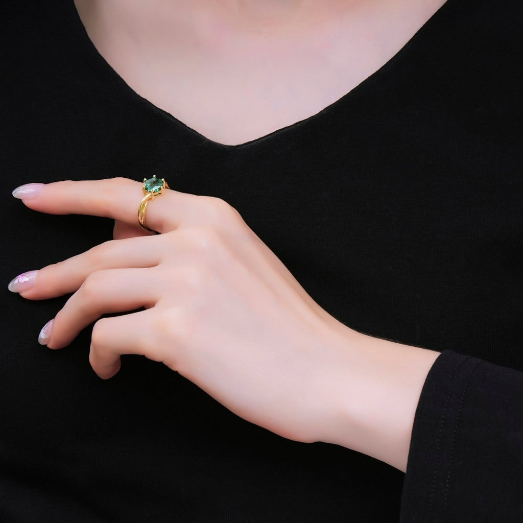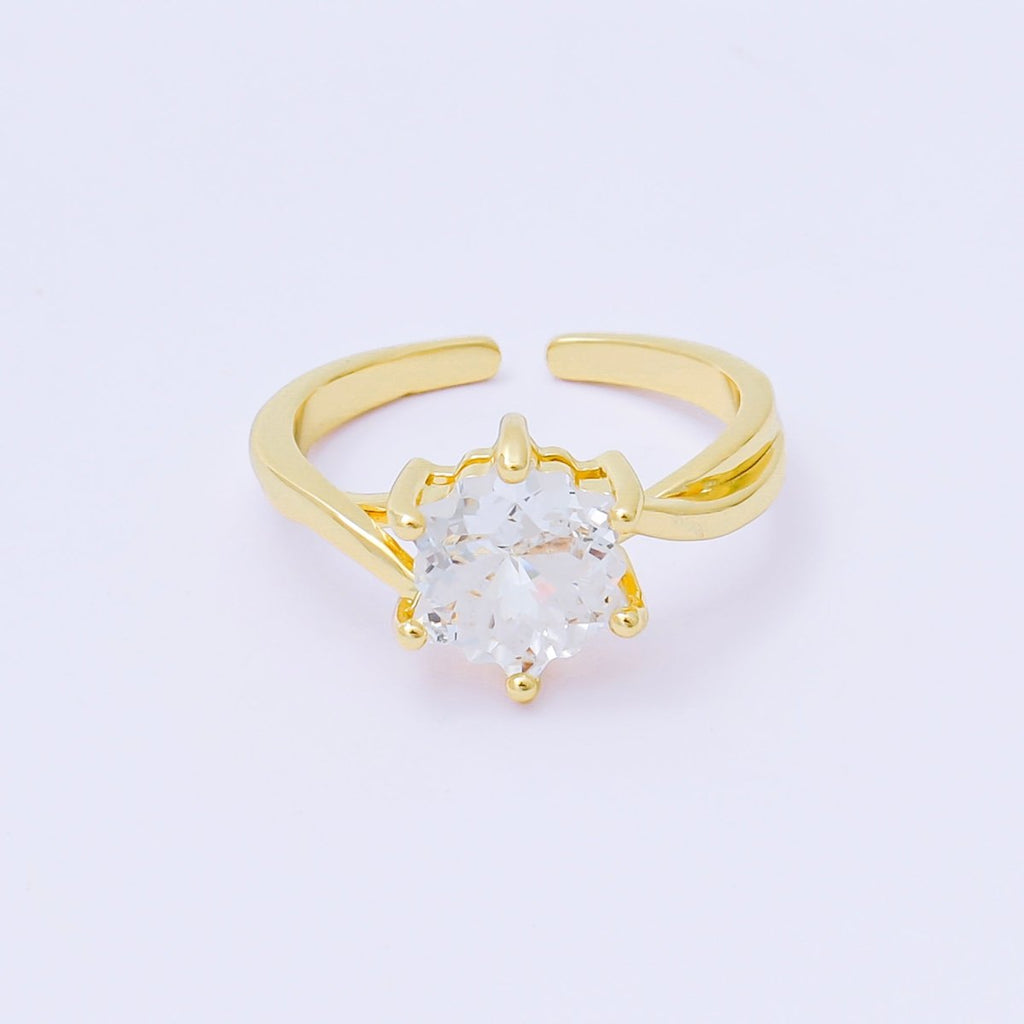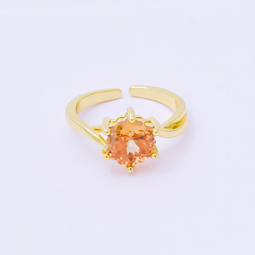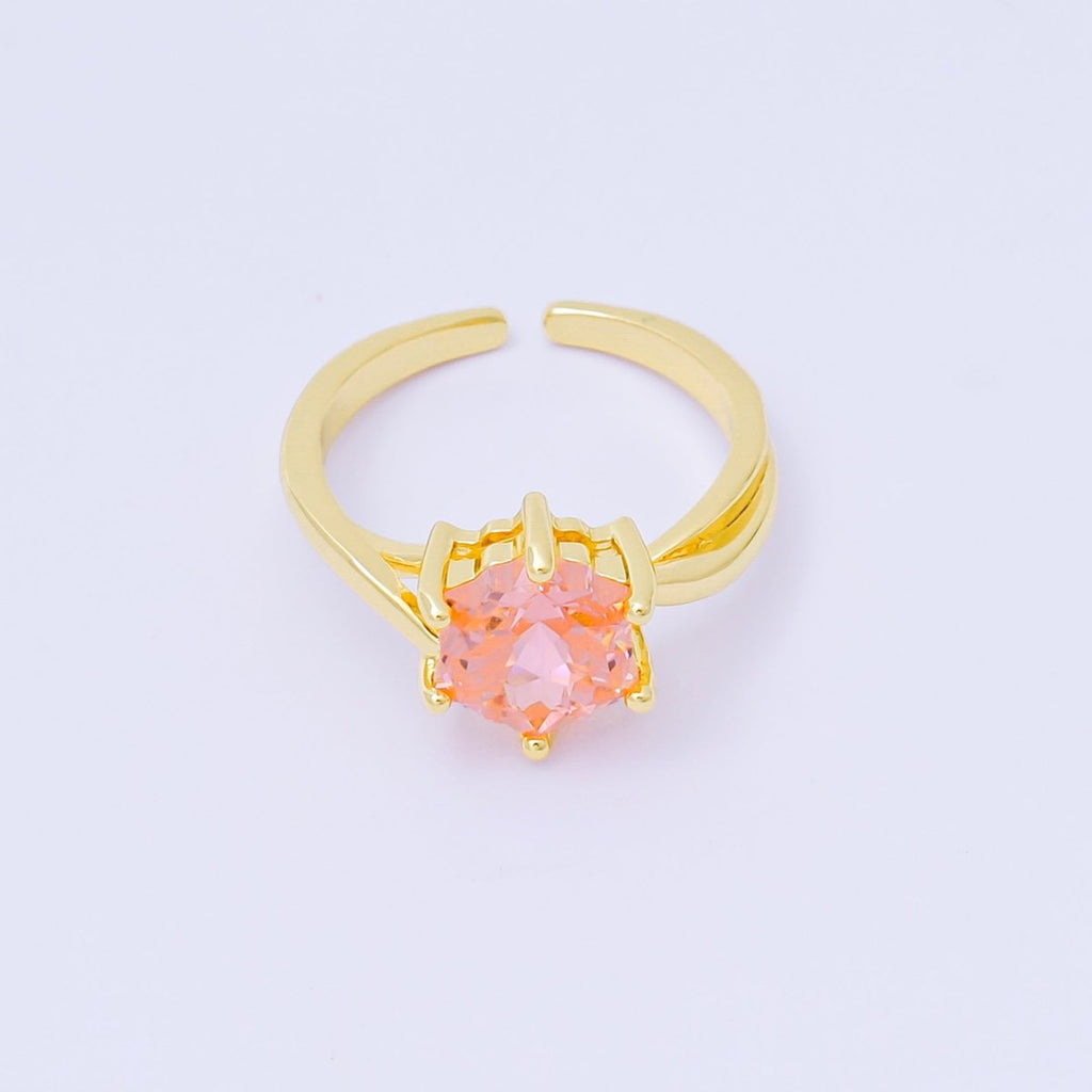 24K Gold Filled Pink, Blue, Green Flower-Shaped CZ Minimalist Solitaire Ring | O2008 O2011 O2010 O2017 O2018 O2107 O2119 O2121 O2149 O2165 O2200 O2209