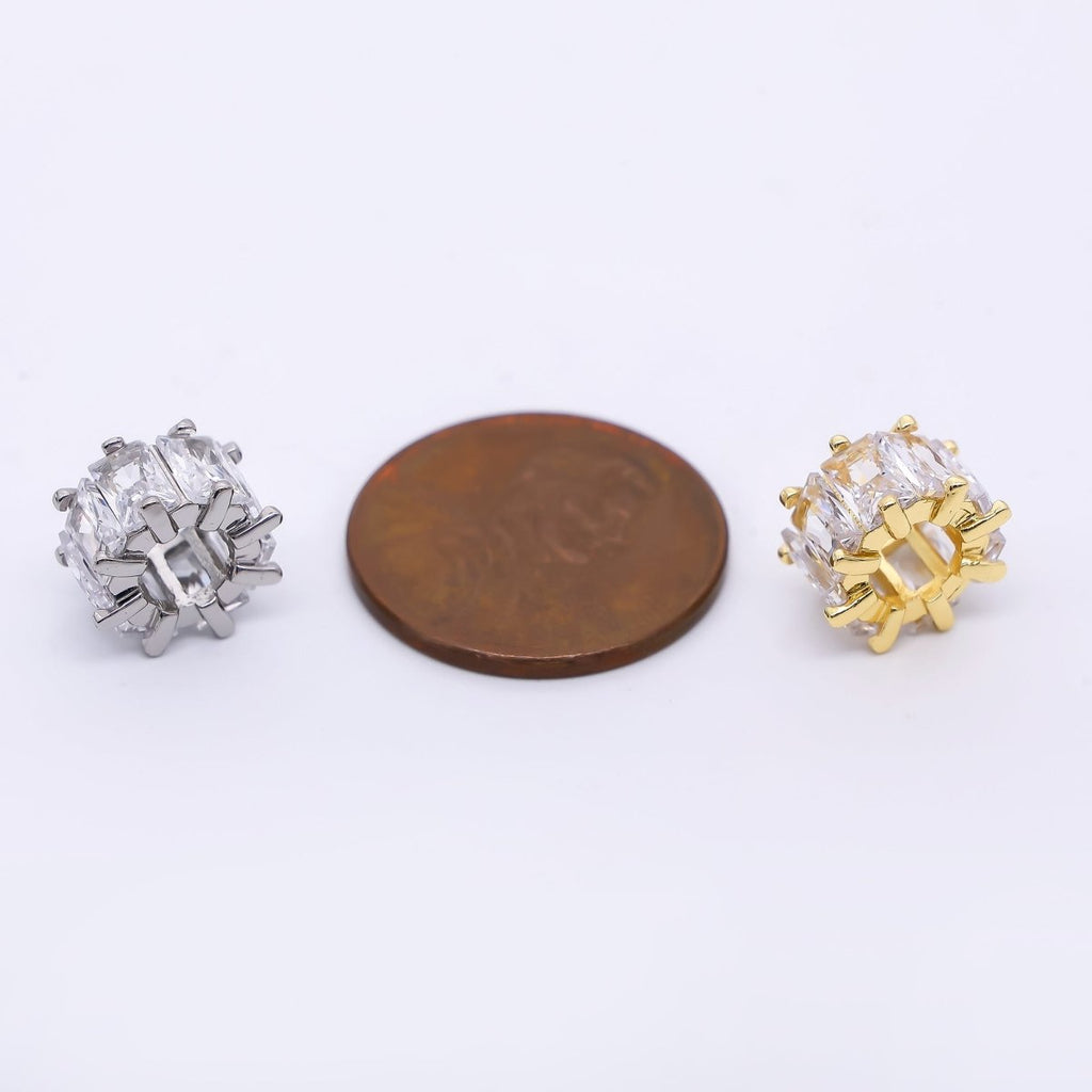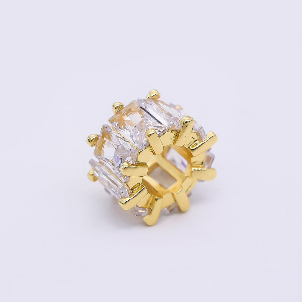 24K Gold Filled Rectangular CZ Tube-Rondelle Hole Bead Spacer | B-050