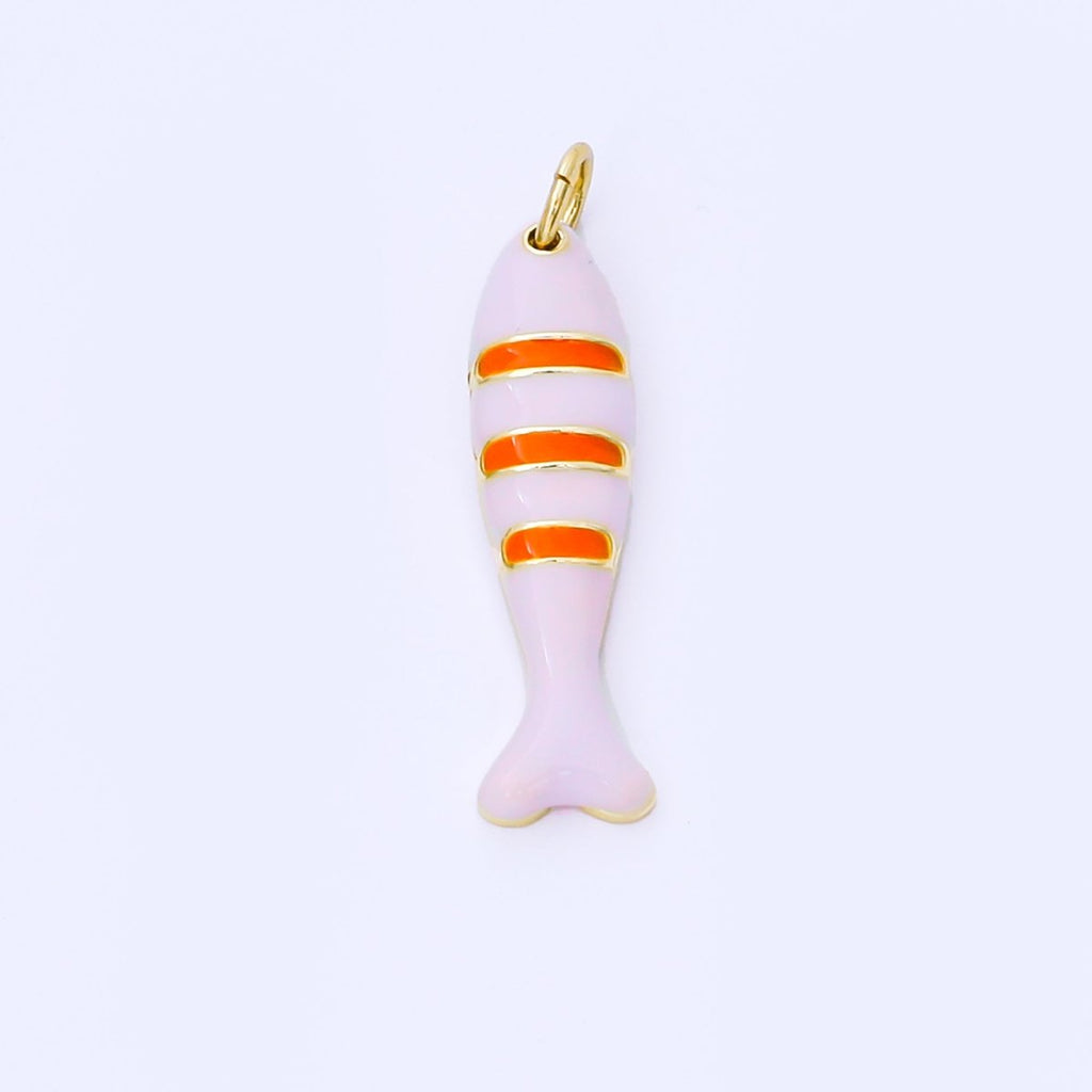 24K Gold Filled 24mm Teal, Orange, Purple Enamel Stripes Sea Creature Sardine Fish Charm | AF1502 AF1503