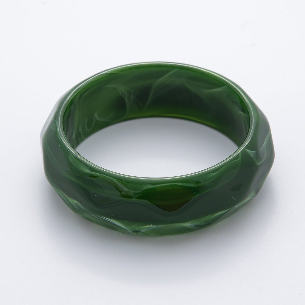 Clear, Beige, Brown, Black, Green Geometric Wavy Solid Resin Acrylic Wide Bangle Bracelet | WA-3394 ~ WA-3399