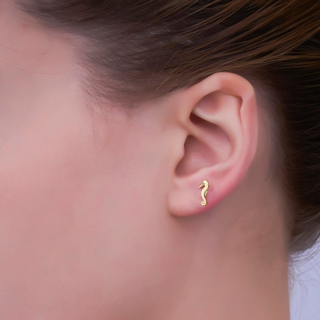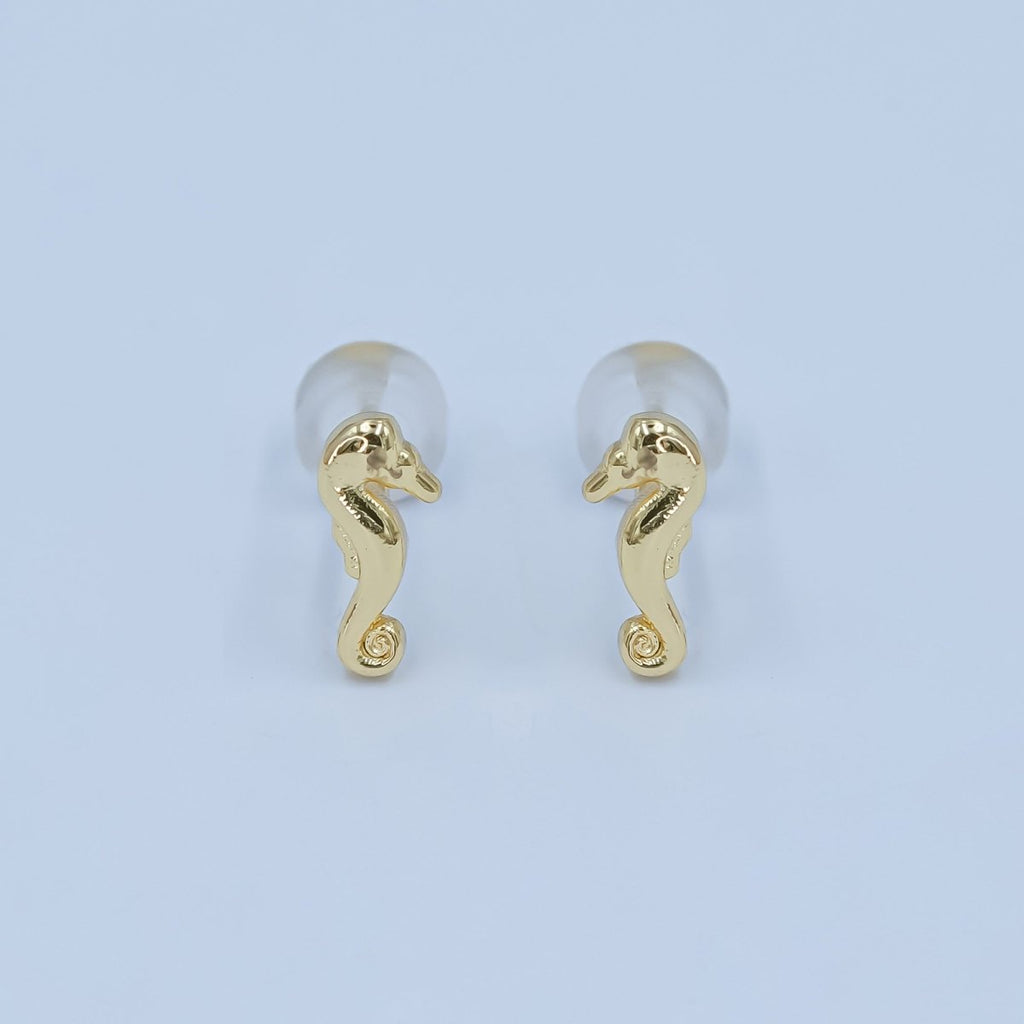 Dainty SeaHorse Stud Earring, Gold Sea Horse Earring, Dainty Fish Earrings Animal Studs Minimalist Stud Earrings Under The Sea ocean Inspire Q-294