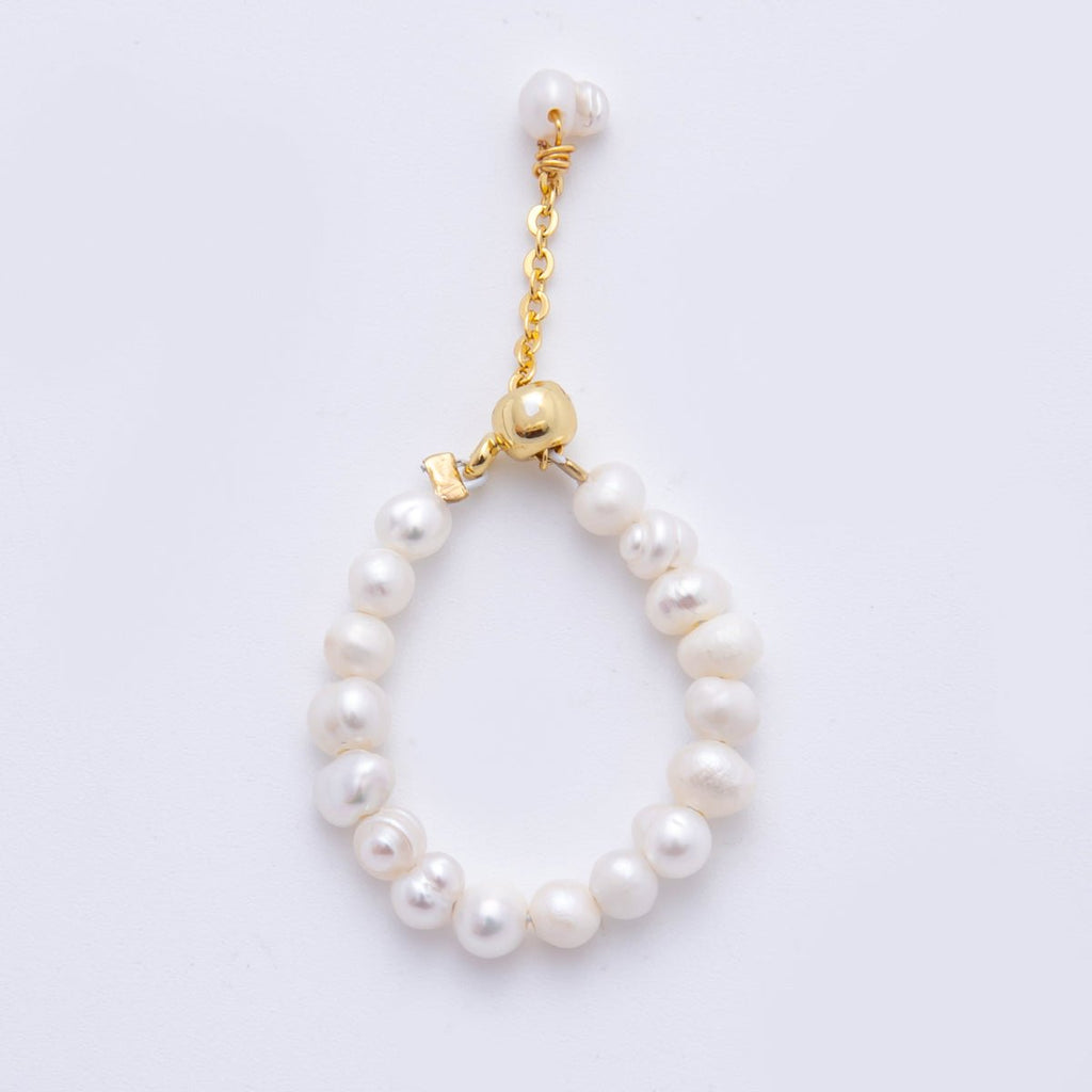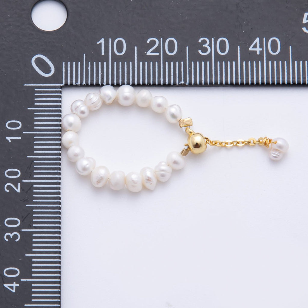 18K Gold Filled White Freshwater Pearl Handmade Adjustable Slider Stretch Ring | O054