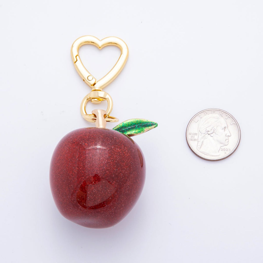 18K Gold Filled Dark Red Apple Fruit Resin Bag Charm Keychain Heart Push Gate Key Ring Accessories | WB-00011