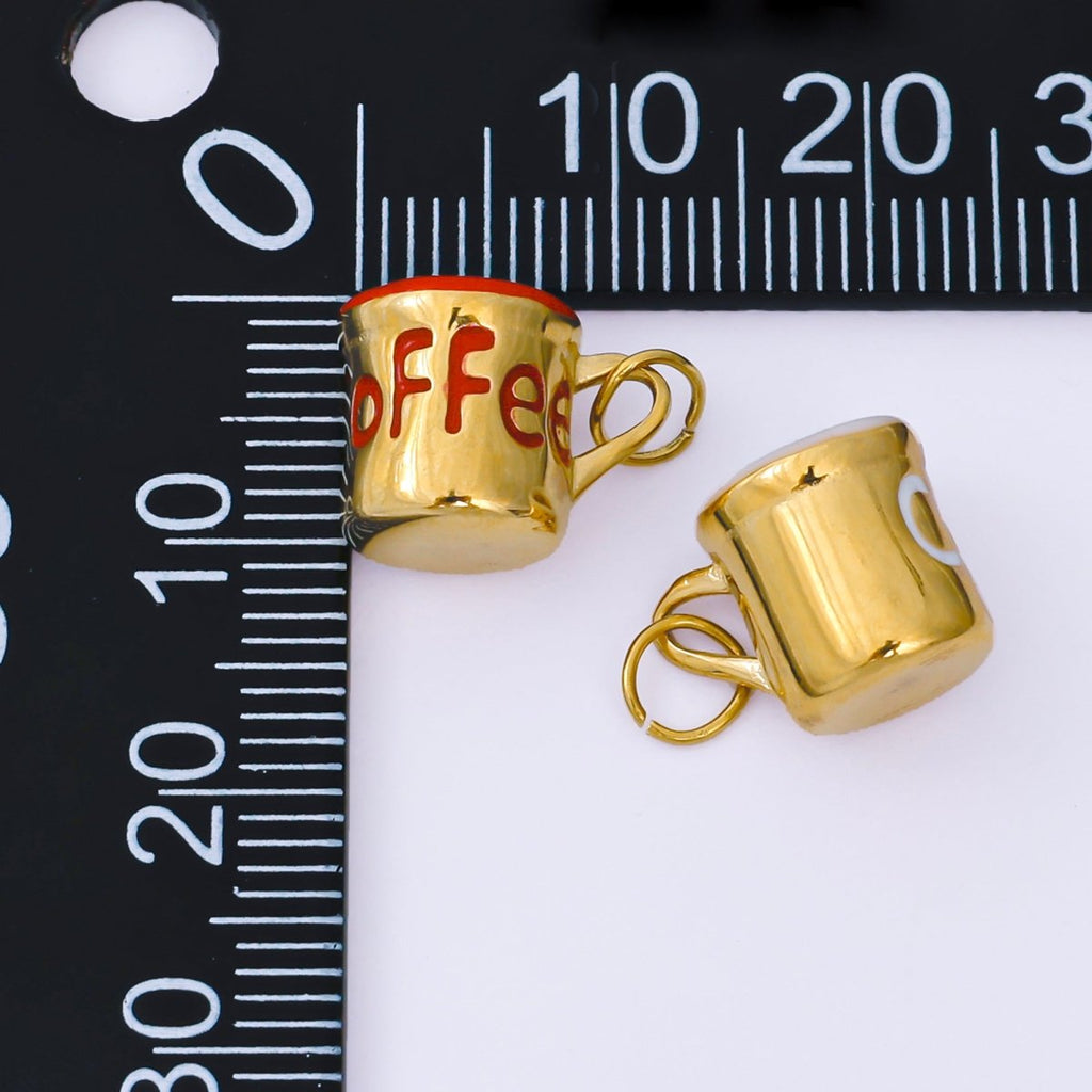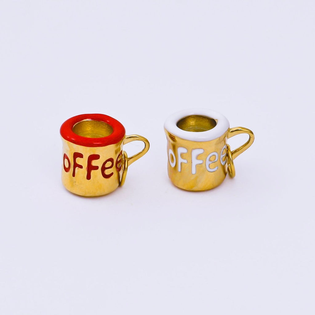 Stainless Steel 10mm Red, White Enamel Coffee Mug Cup 3D Multidimensional Charm | J571