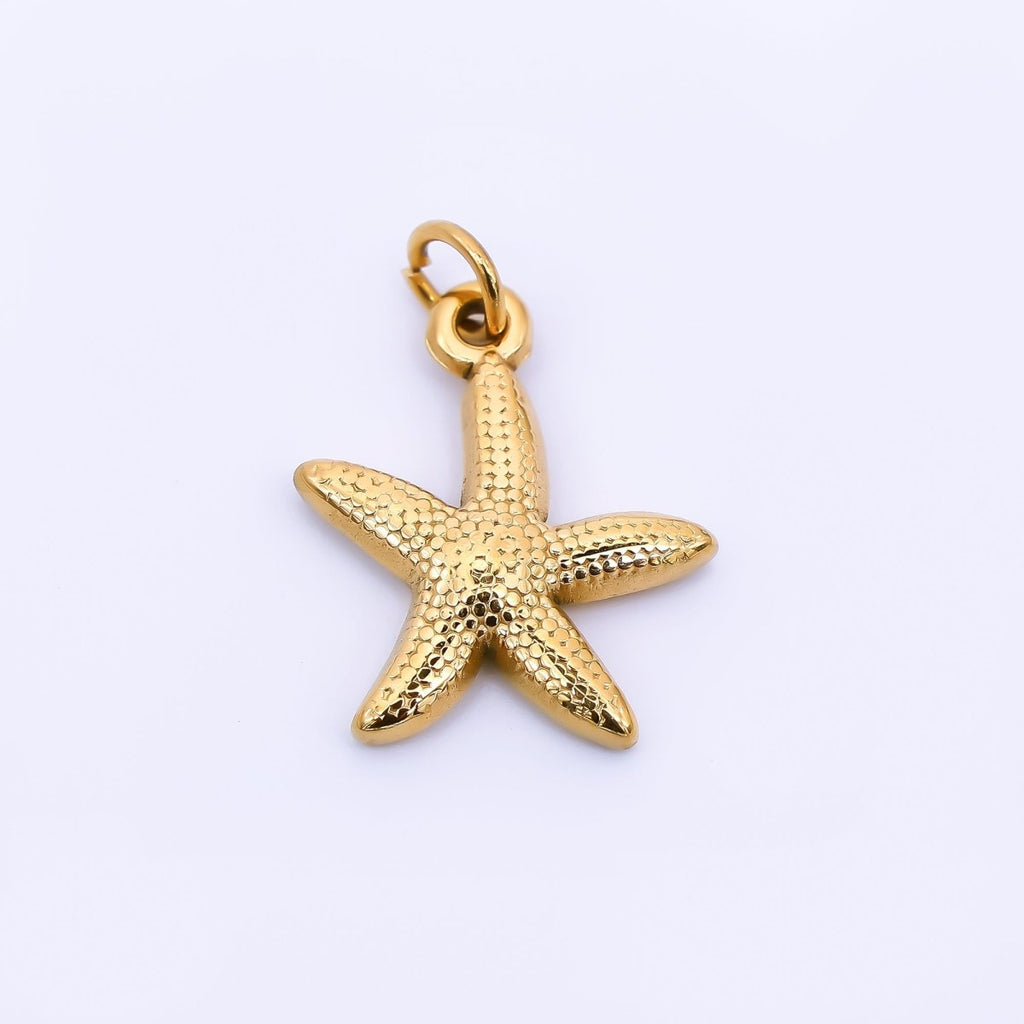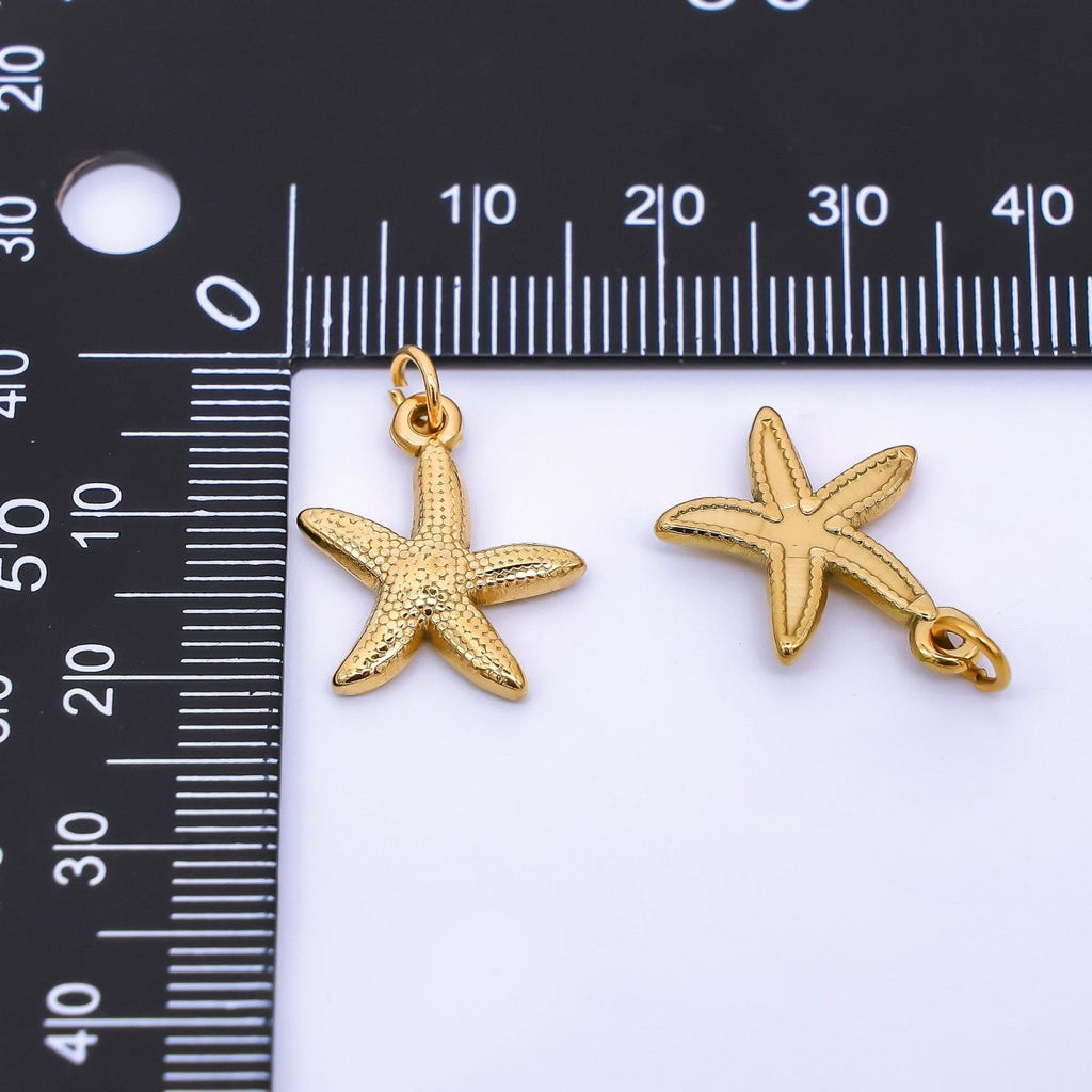 Gold Stainless Steel 18mm Dotted Under the Sea Starfish Charm | J058