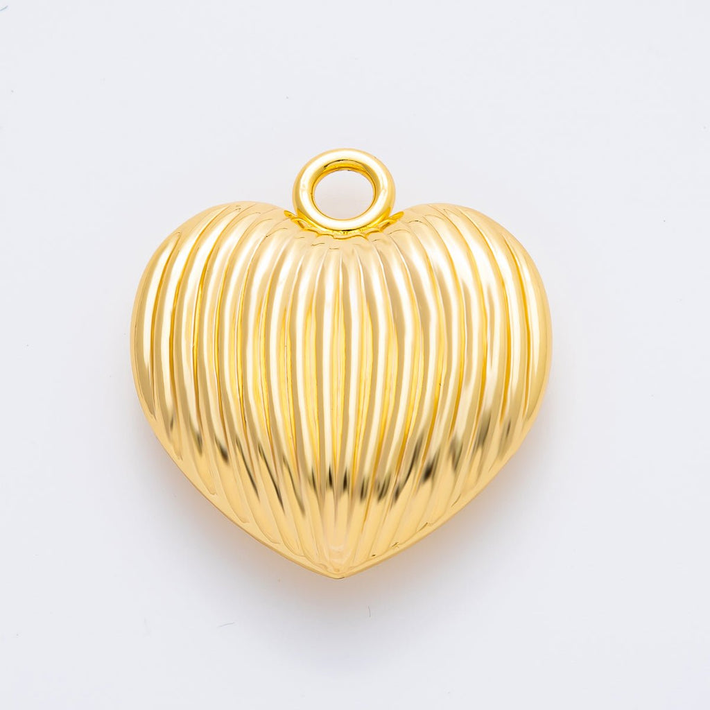 Gold Stainless Steel 45mm Puffy Linear Stripes Heart Charm | J858