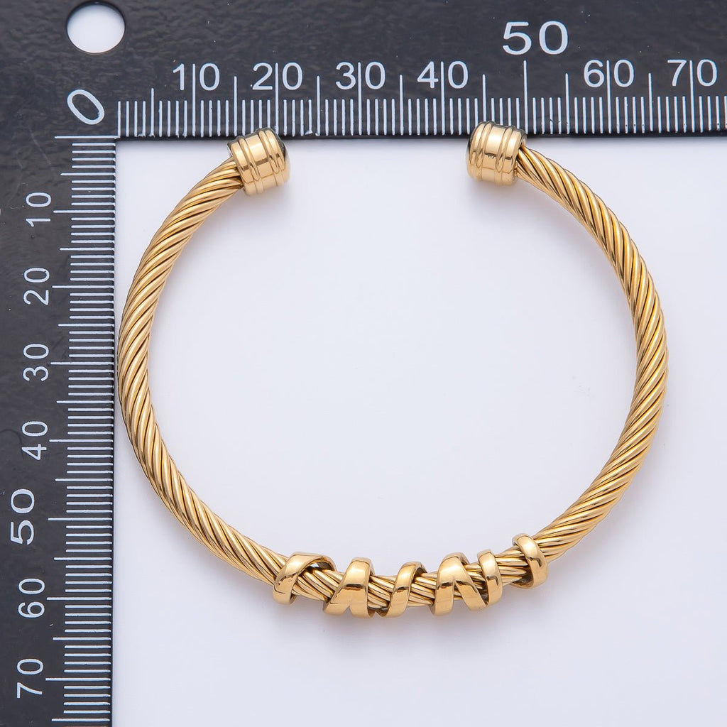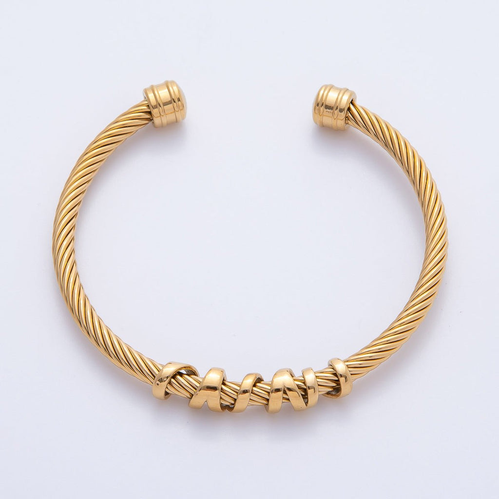 Gold Stainless Steel Basic Twisted Cable Adjustable Open Cuff Bracelet | WA-3799