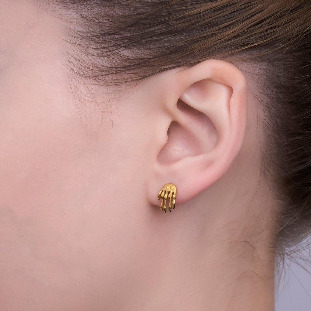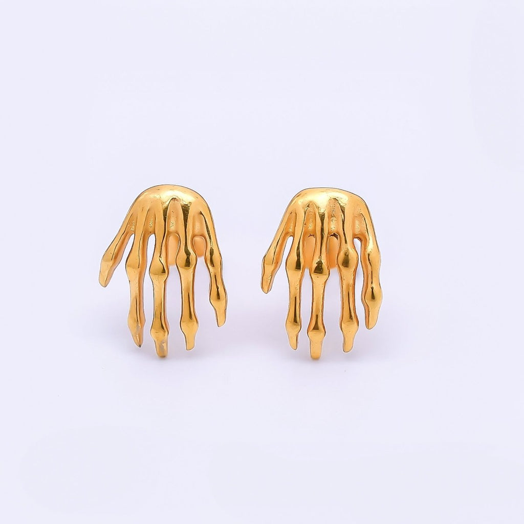 Gold Stainless Steel Skeleton Witch's Hands Stud Earrings | AB1584