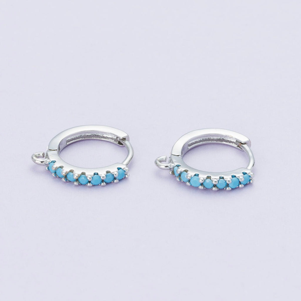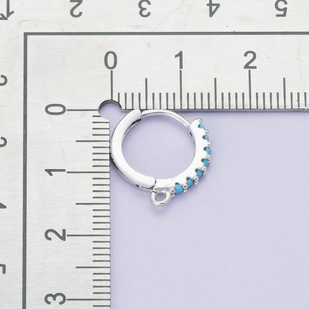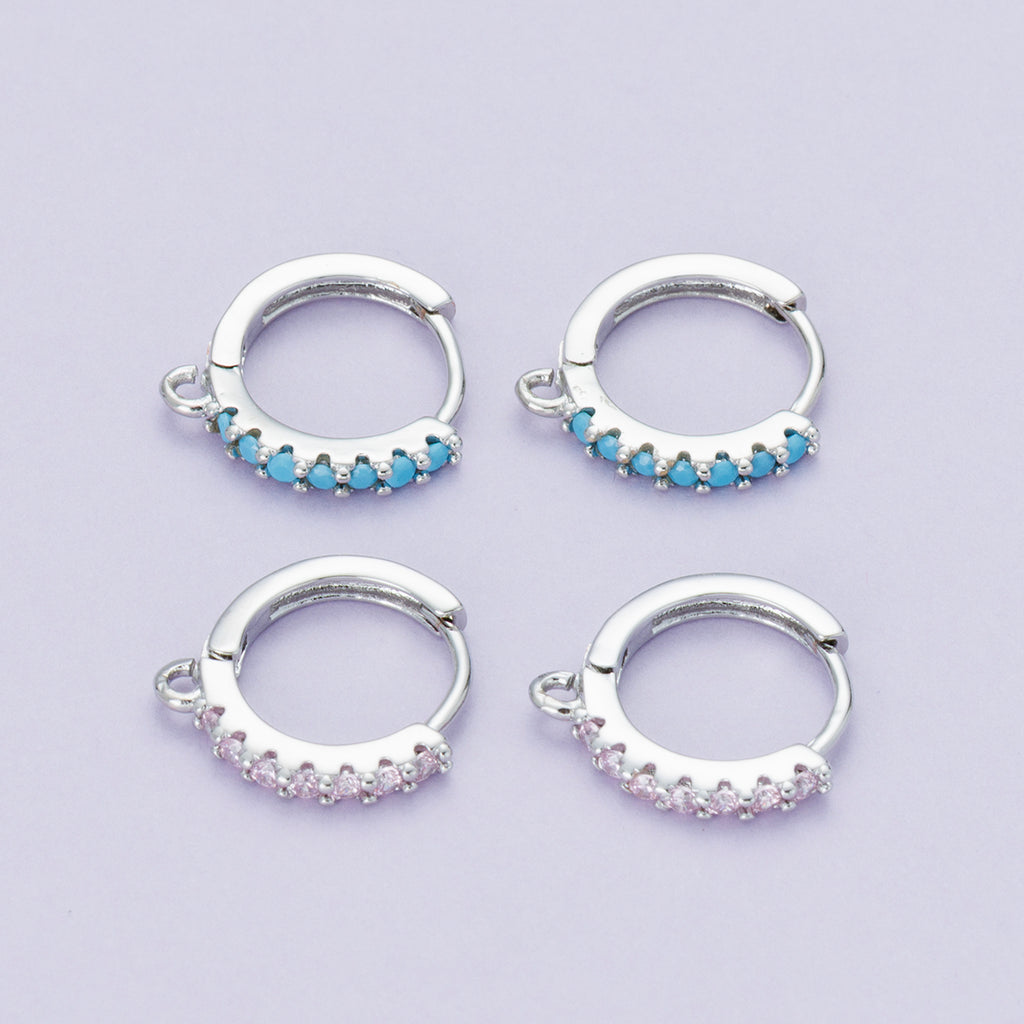 Rhodium Plated 14mm Pink, Turquoise CZ Micro Paved Open Loop Drop Huggie Earrings | Findings-00085