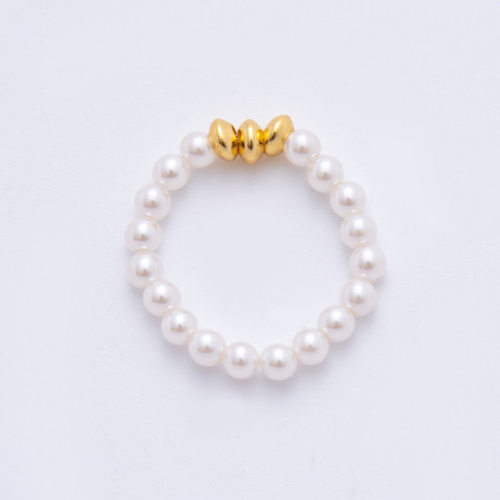 18K Gold Filled White Shell Pearl Rondelle Bead Stretch Ring | O045