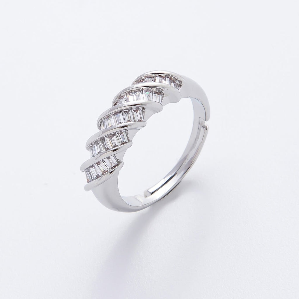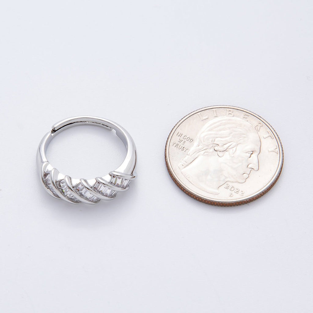 Silver Clear Baguette CZ Croissant Adjustable Round Ring | O489