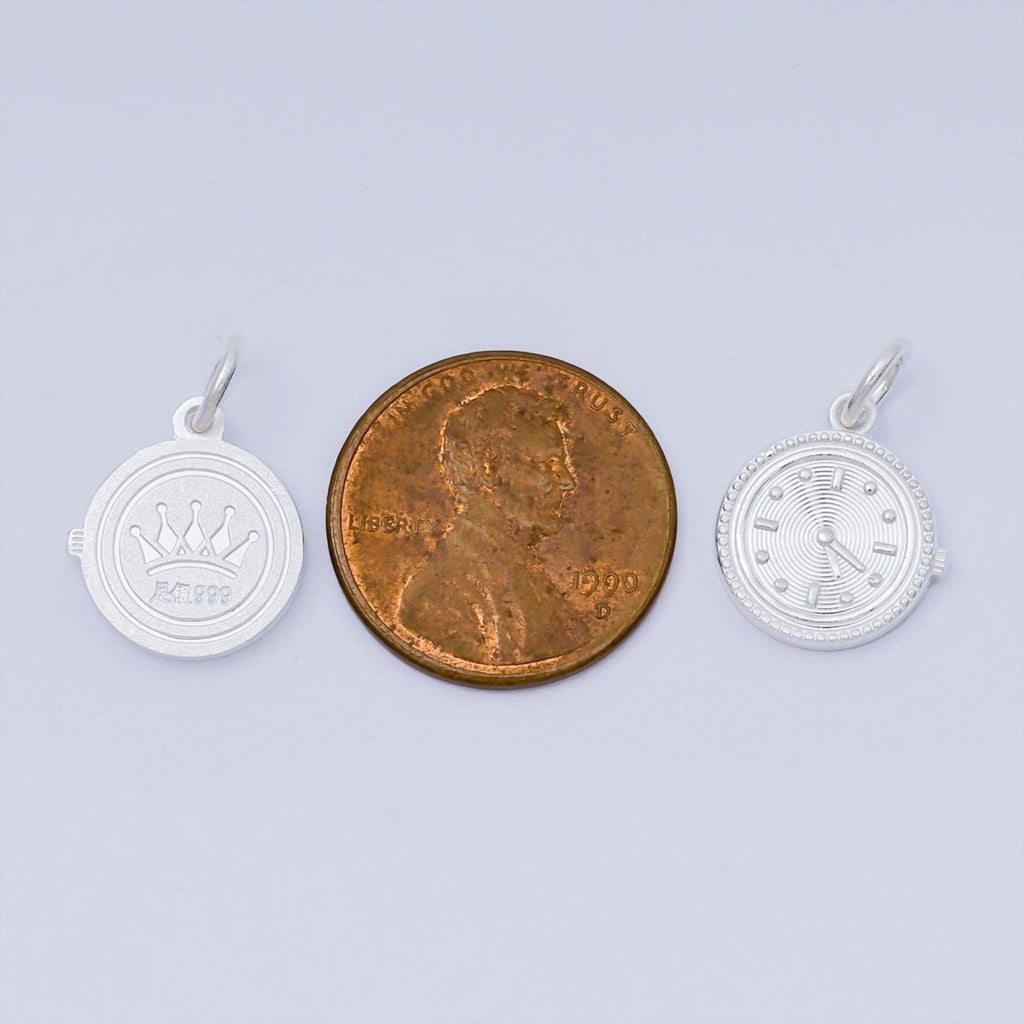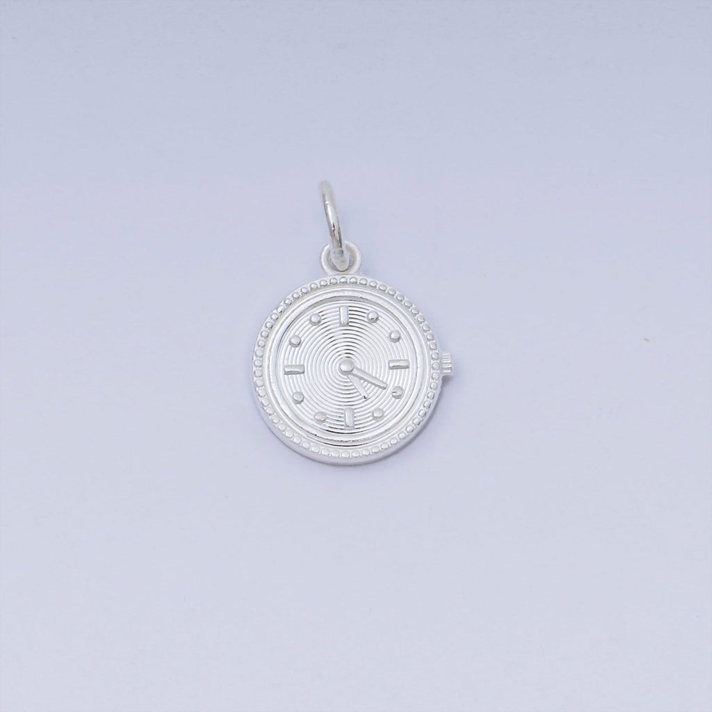 S925 Sterling Silver Round Mini Clock Watch Dainty Charm | SL-653