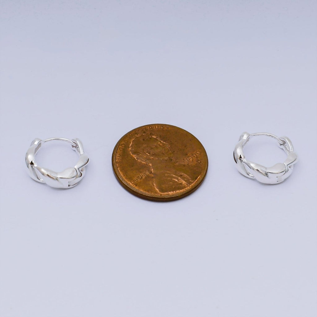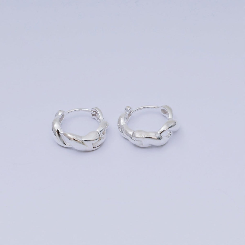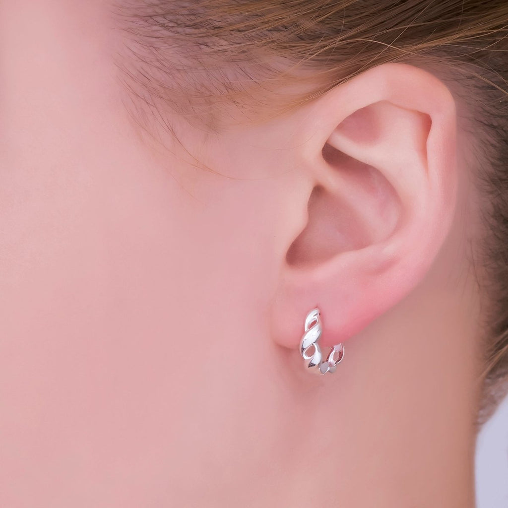 S925 Sterling Silver Twist Link Croissant Hinged Huggie Hoop Earrings | SL-661