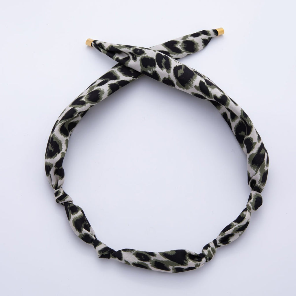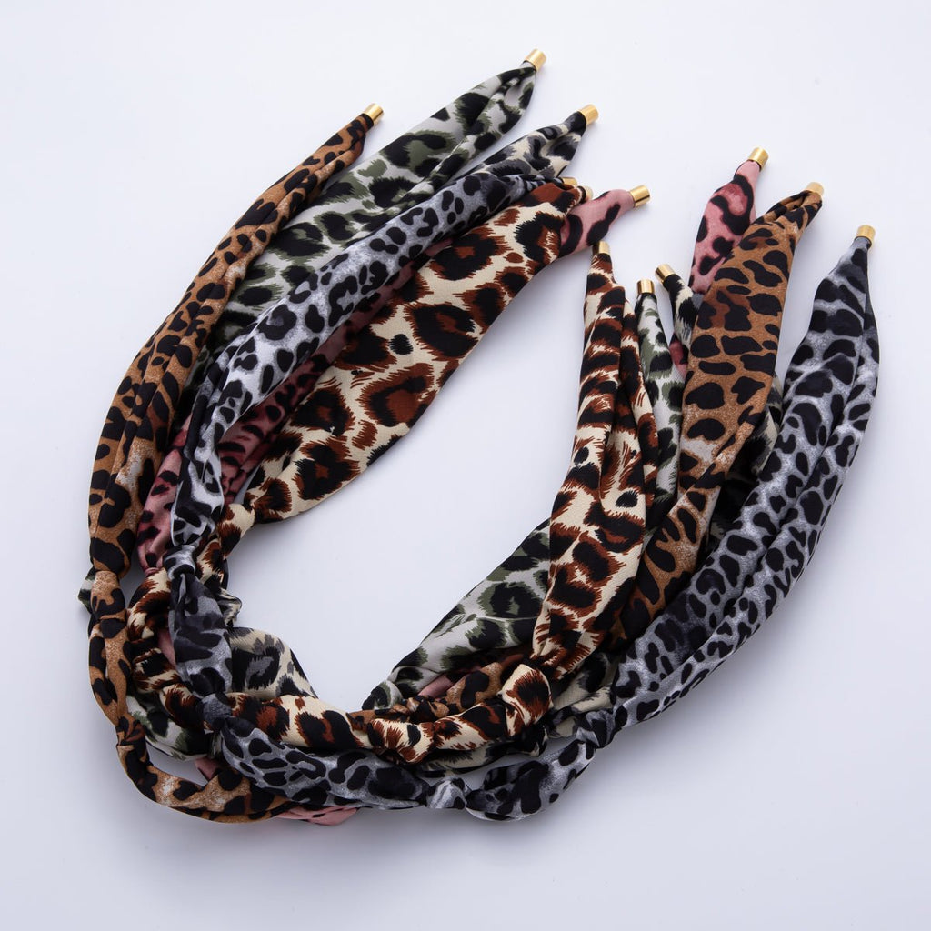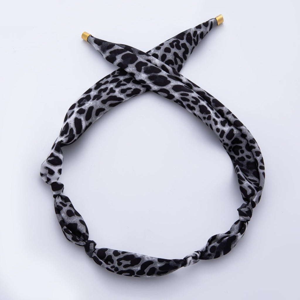 Stainless Steel Brown Black Cheetah Leopard Print Soft Faux Silk Bandana Scarf Necklace | WA-976 ~ WA-987