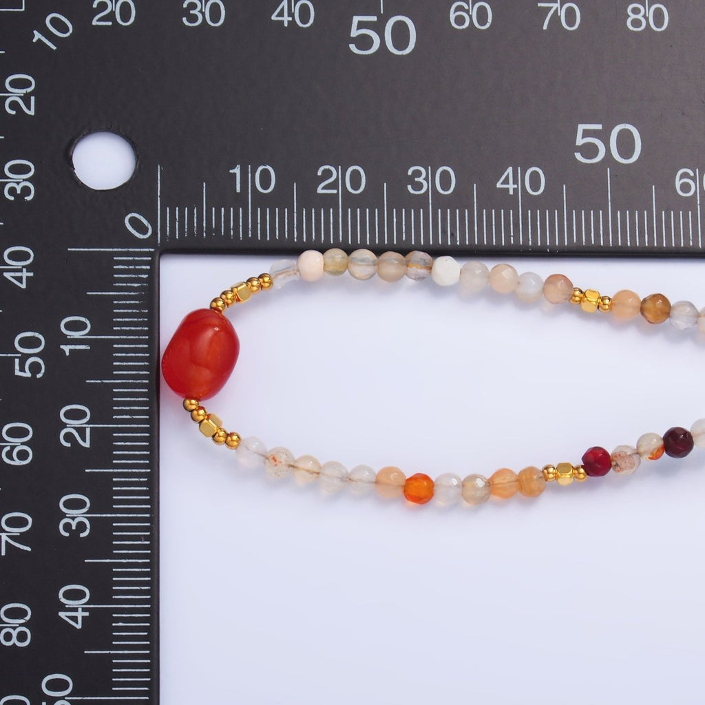 Stainless Steel Citrine Carnelian Natural Gemstone 15.5 Inch Choker Necklace | WA-3109