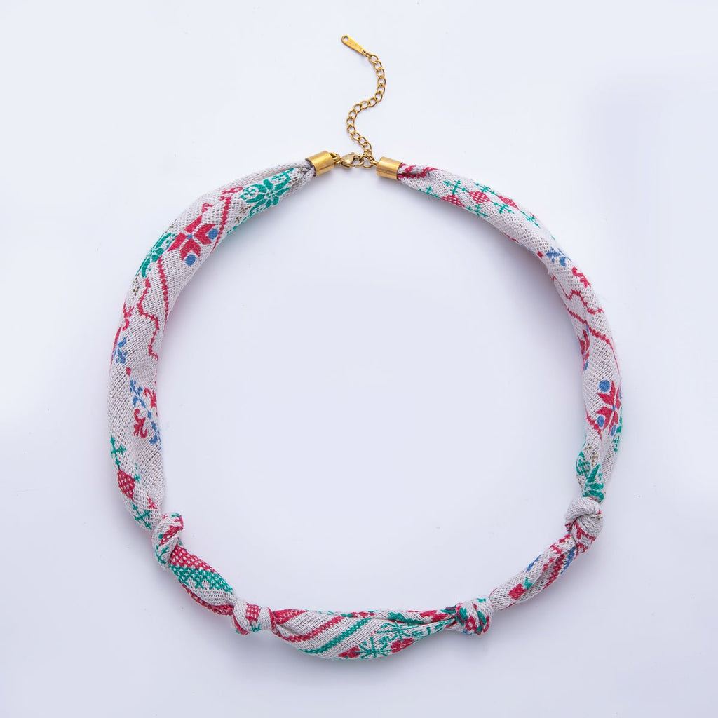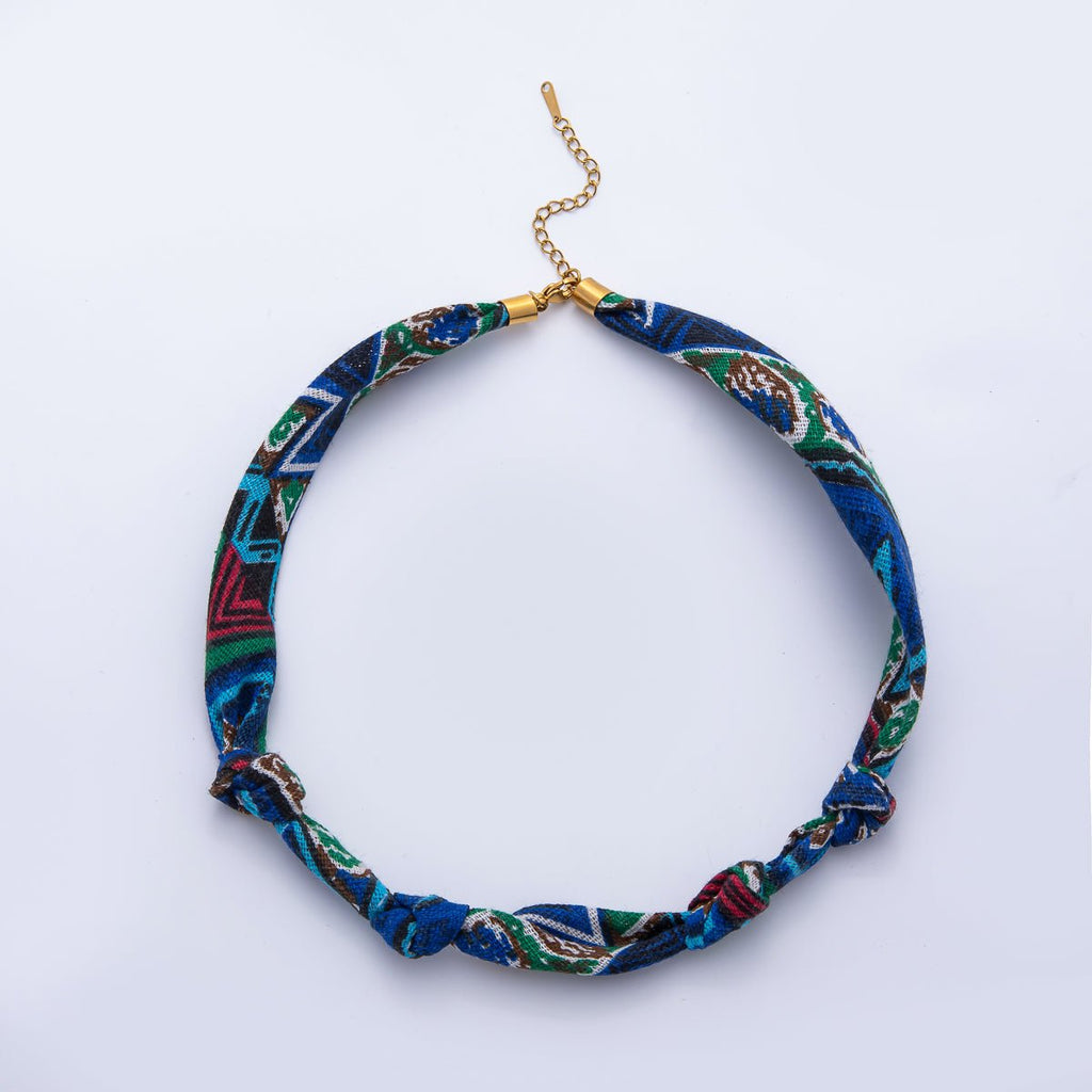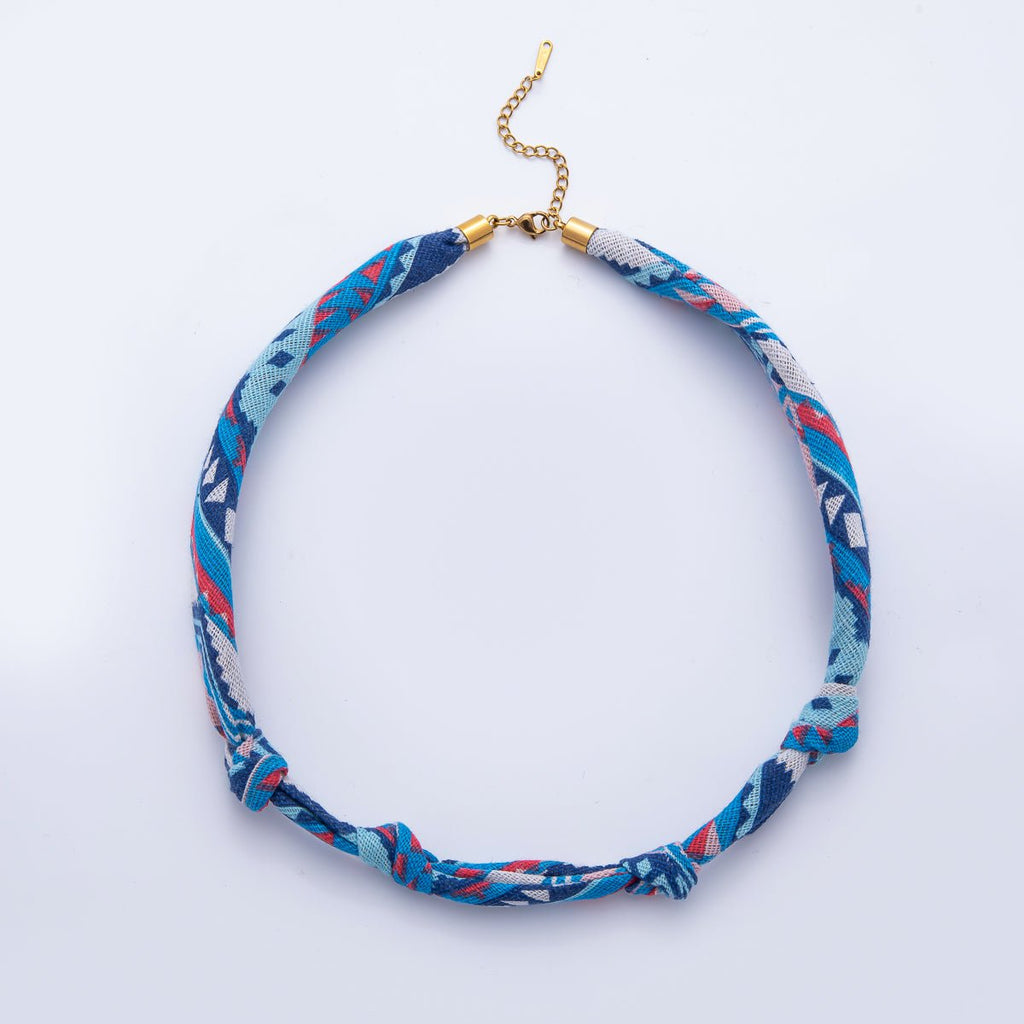 Stainless Steel Blue, Red, White Knot Geometric 18 Inch Handmade Cotton Scarf Necklace w. Extender | WA-1864 ~ WA-1904
