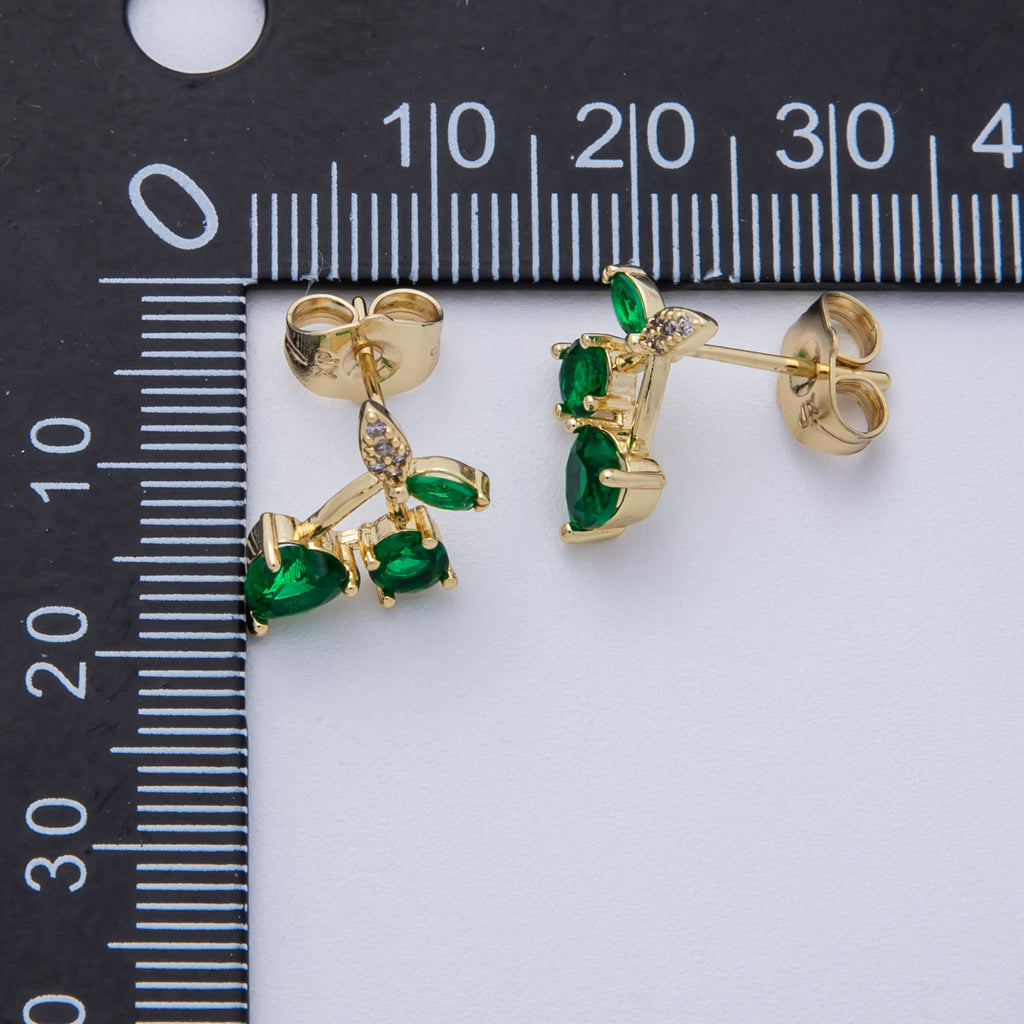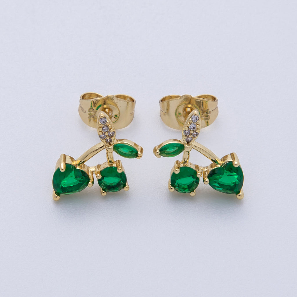 14K Gold Filled 12.5mm Red, Green CZ Cherry Fruit Stud Earrings | Earrings-020024 Earrings-020035