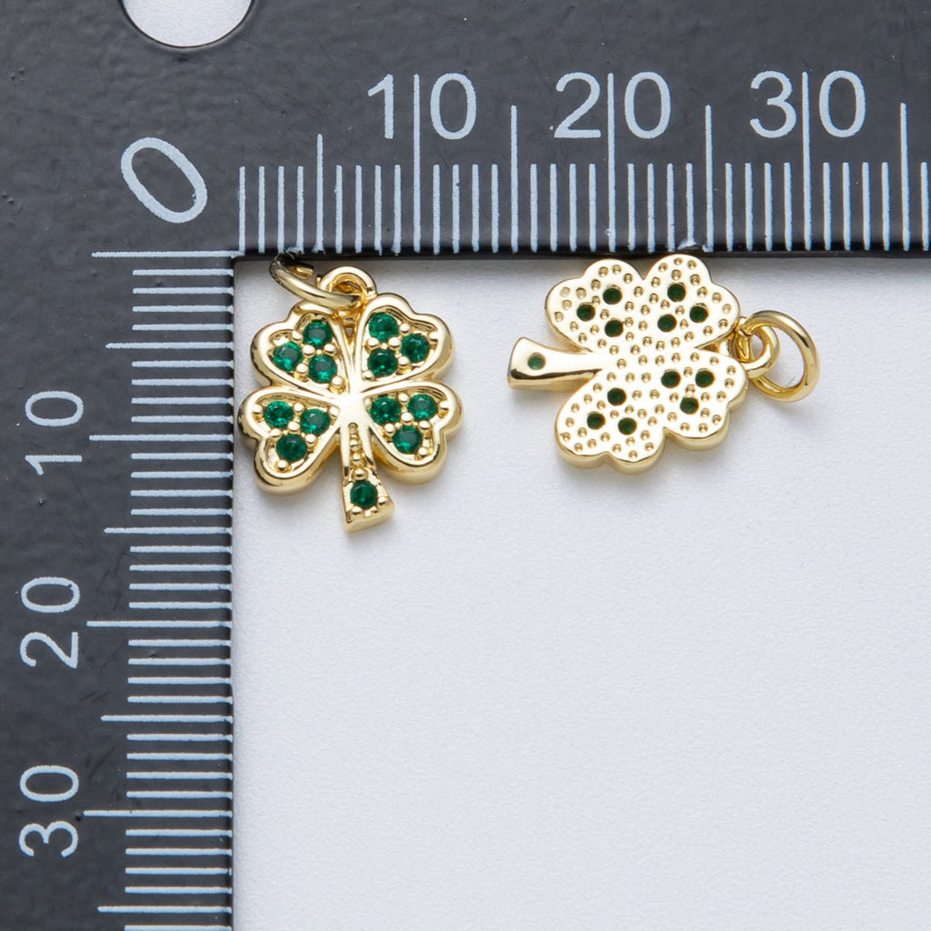 14K Gold Filled 13.5mm Green Micro Paved CZ Lucky Clover Flower Charm | Charms-00042