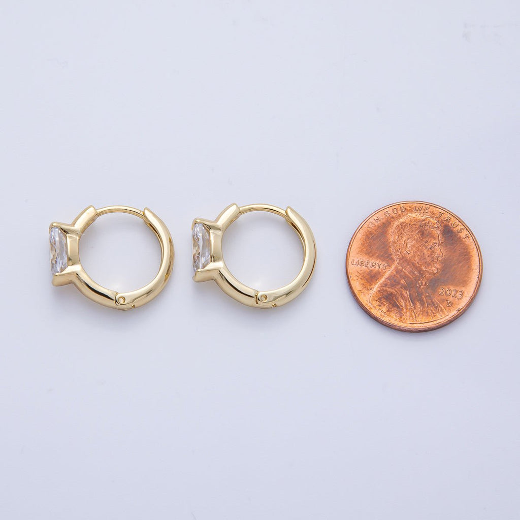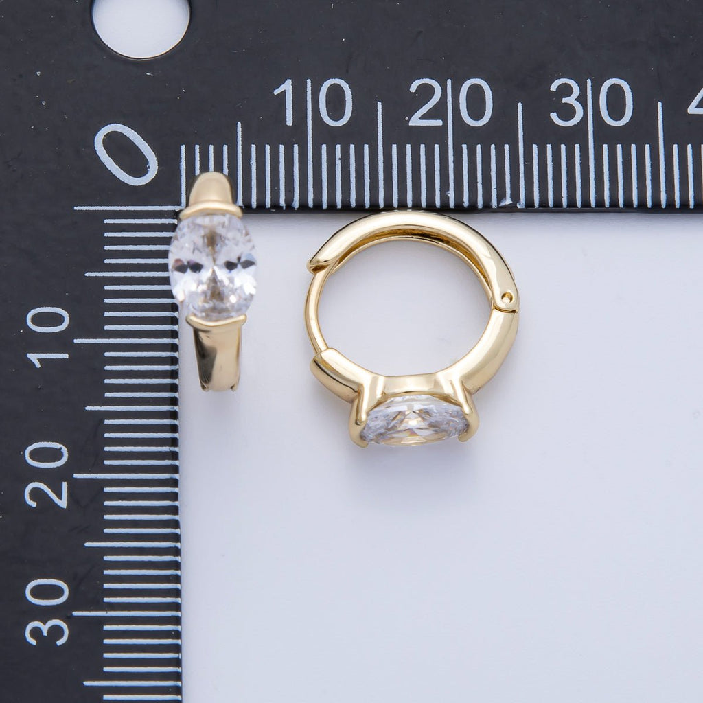 14K Gold Filled 17.3mm Clear CZ Oval Solitaire Cartilage Huggie Earrings | Earrings-00090