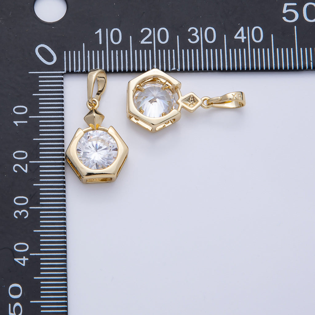 14K Gold Filled 18mm Clear CZ Round Hexagon Pendant | Charms-00083