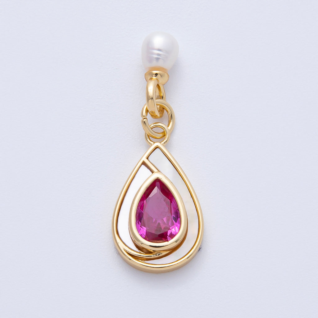 14K Gold Filled 19.5mm Pink, Green CZ Shell Pearl Drop Findings | Findings-400002