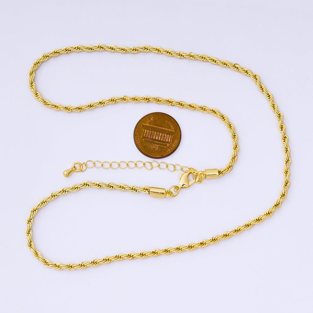 14K Gold Filled 3mm Rope Chain 18.5 Inch Necklace w. Extender | WA-1373