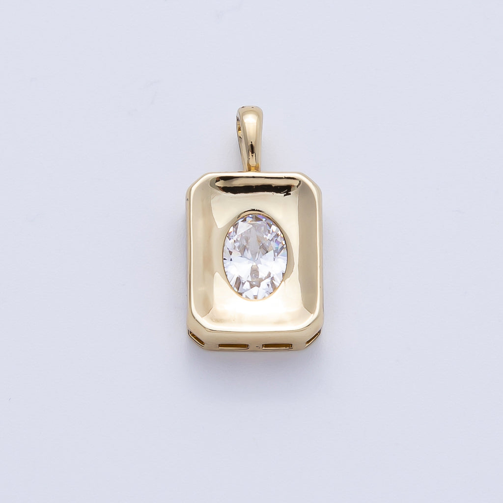 14K Gold Filled 21mm Oval CZ Rectangle Bezel Pendant | Charms-00086
