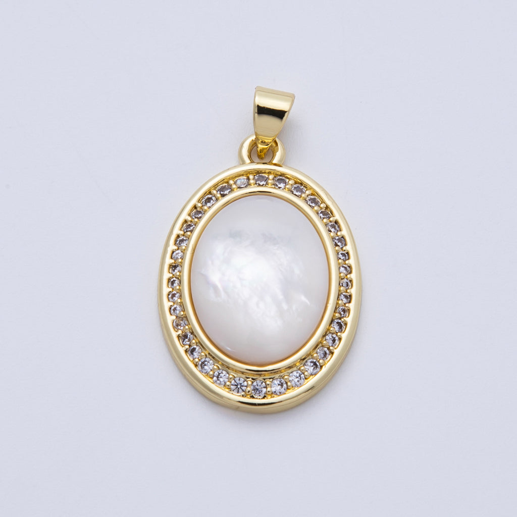 14K Gold Filled 26.5mm Shell Pearl Micro Paved CZ Cabochon Oval Pendant | AA1689