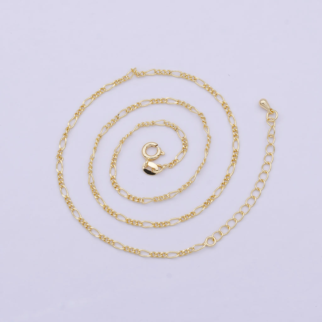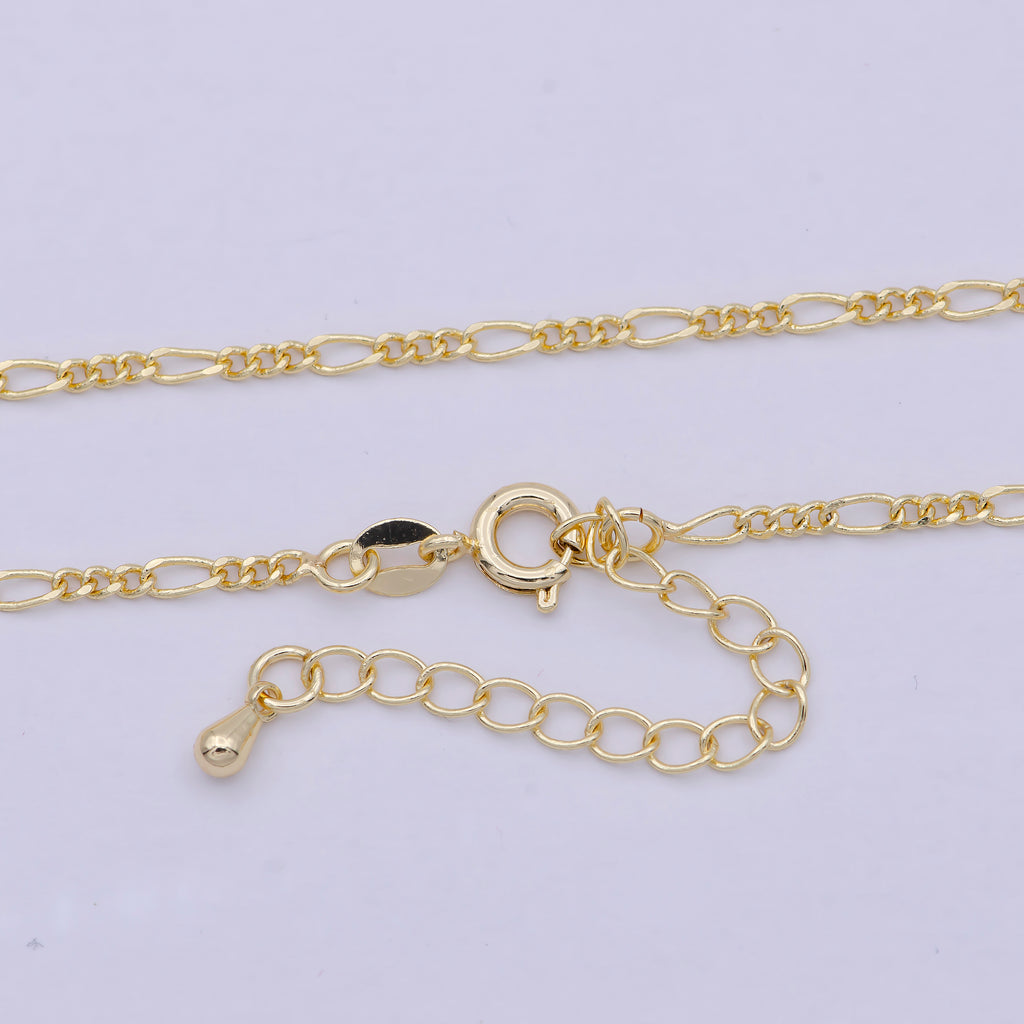 14K Gold Filled 2mm Dainty Minimalist Figaro Chain 17 Inch Necklace | WA-3977