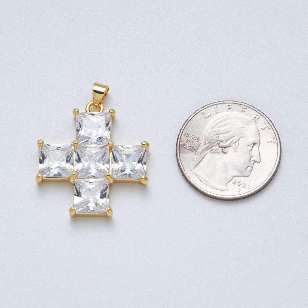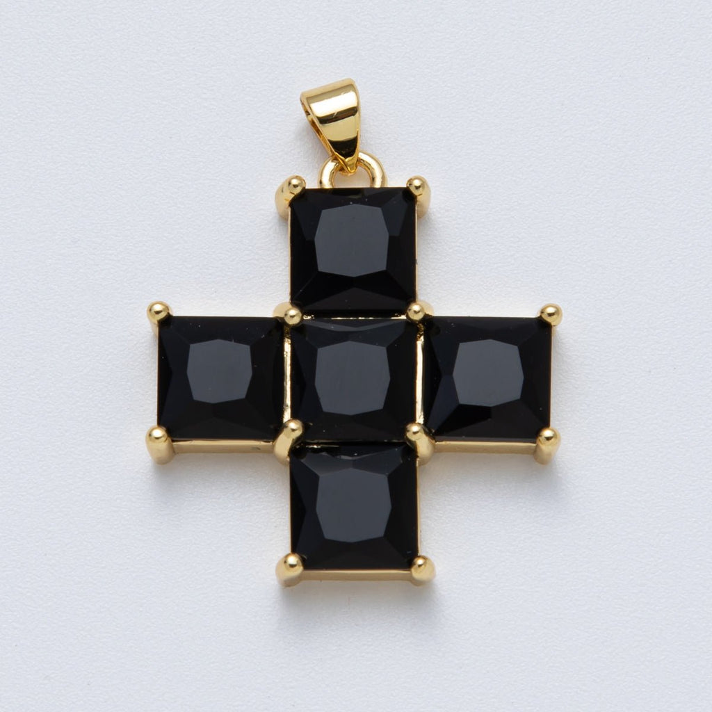 14K Gold Filled 30mm Black, Clear CZ Baguette Square Religious Cross Pendant | Charms-00065 Charms-00066