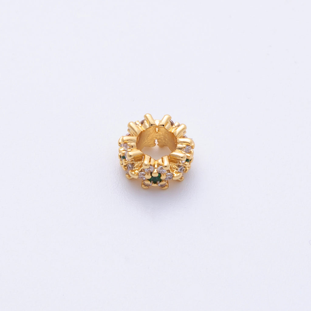 14K Gold Filled 7.8mm Green CZ Flower Spacer Bead | Bead-200003