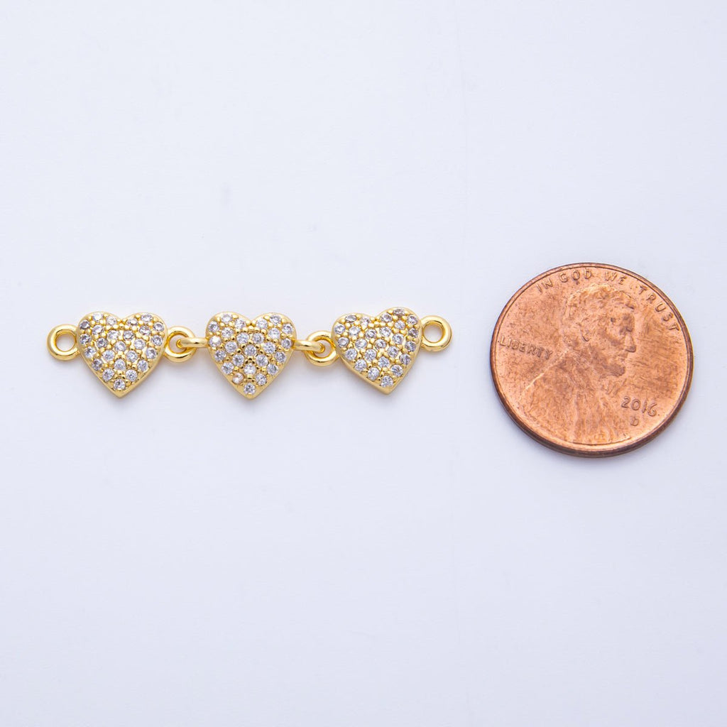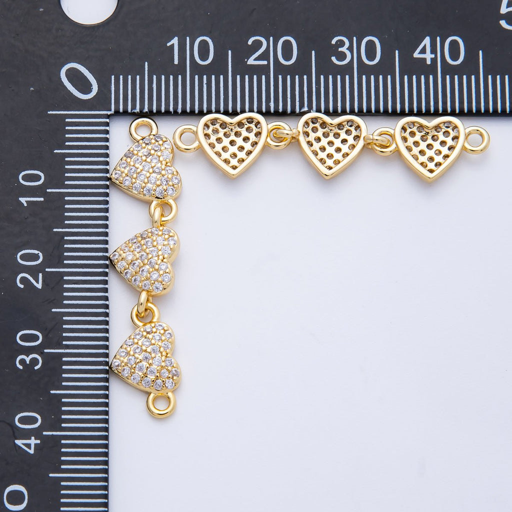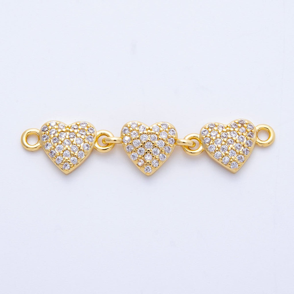 14K Gold Filled 8mm Micro Paved CZ Triple Heart Connector | Connectors-00008
