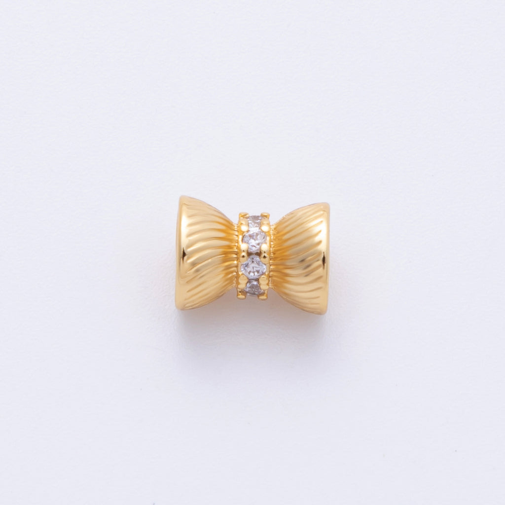14k Gold Filled 9mm Clear CZ Ribbon Bow Textured Spacer Beads | Beads-200004