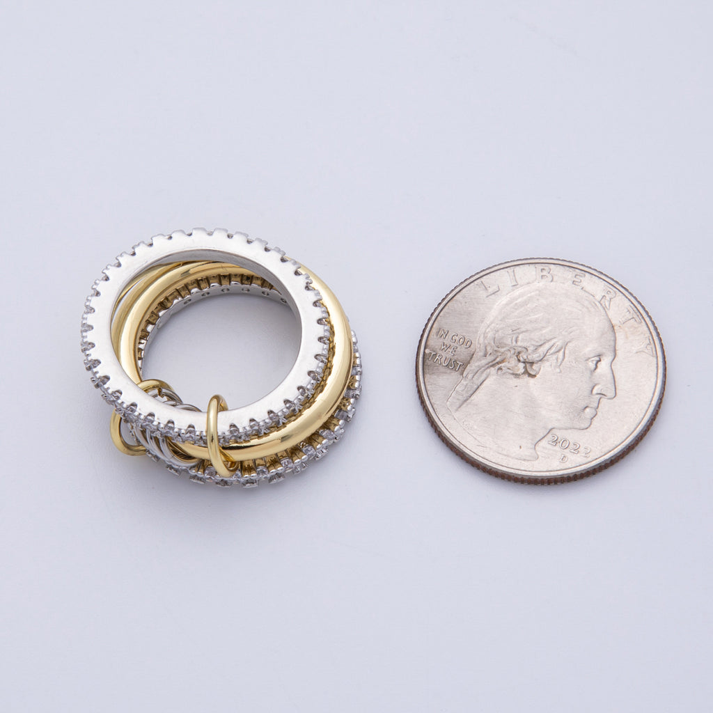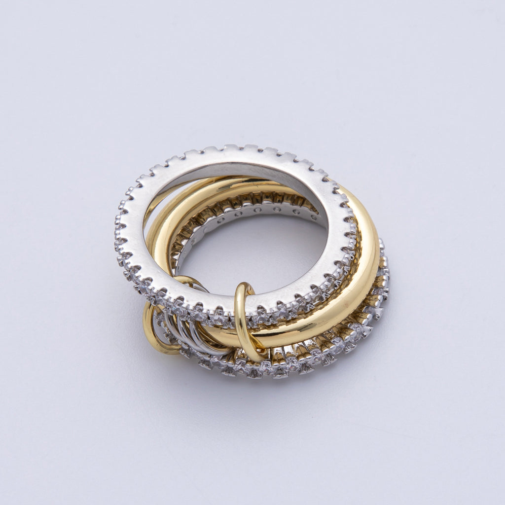 14K Gold Filled Micro Paved CZ Interlock Stacked Mixed Metal Ring | O1676