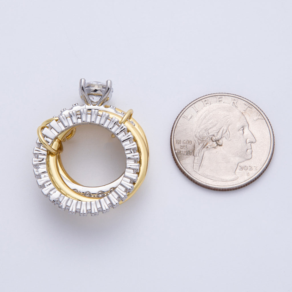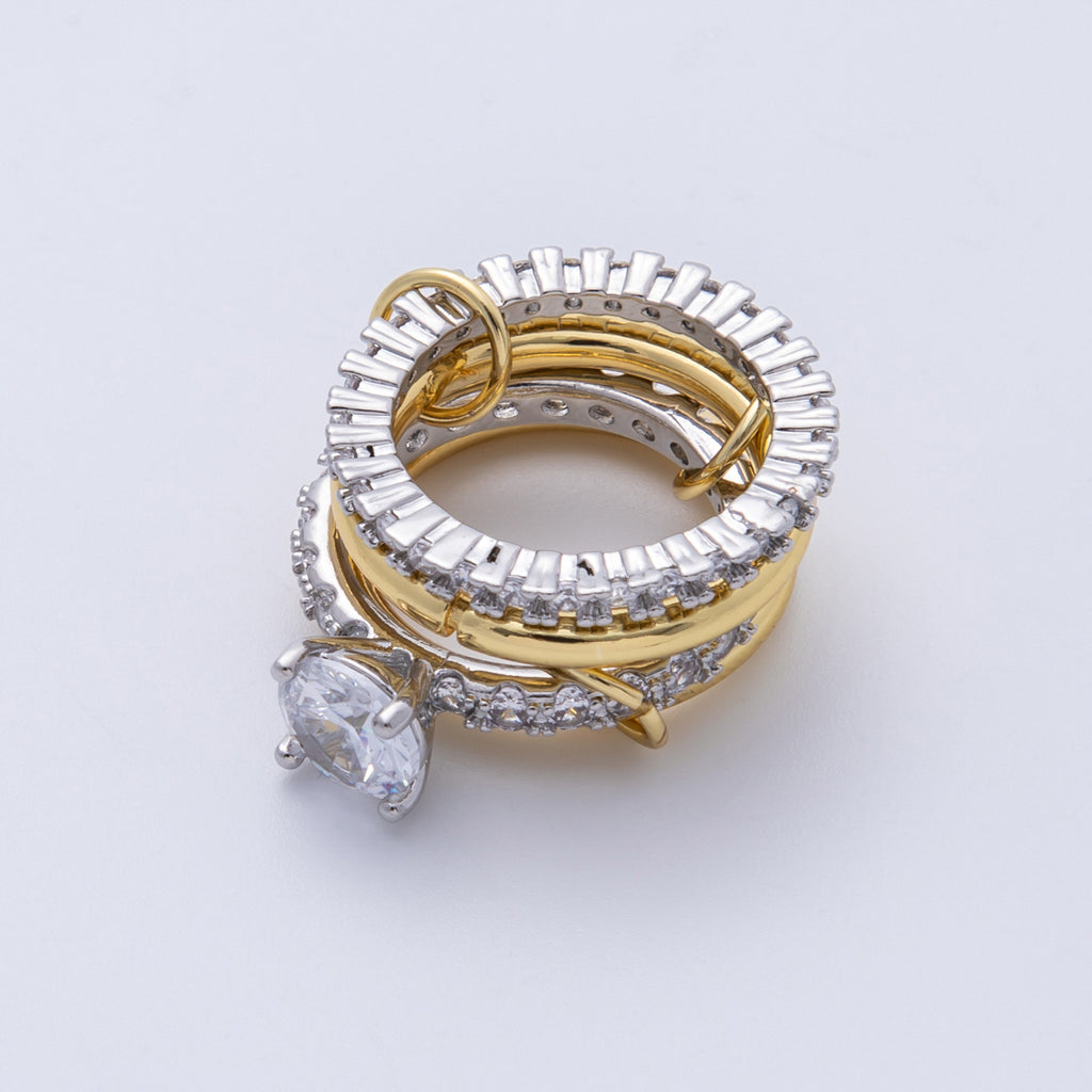 14K Gold Filled Solitaire Micro Paved CZ Interlock Stacked Mixed Metal Ring | O1678