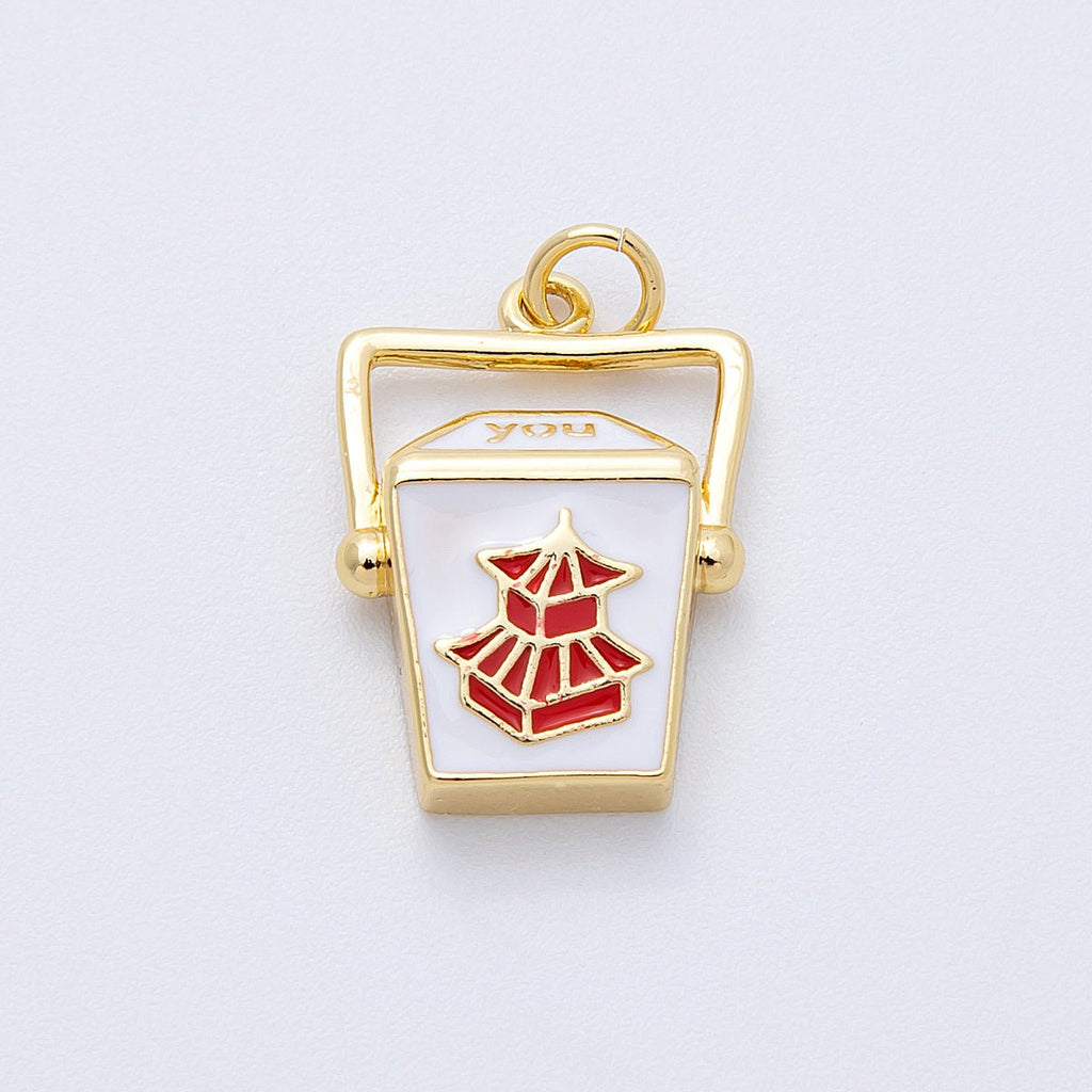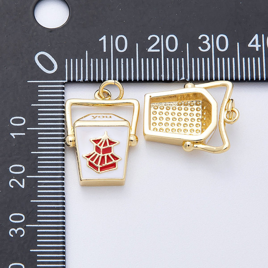 16K Gold Filled 20mm Chinese Take Out Box Enamel Charm | Charms-00123