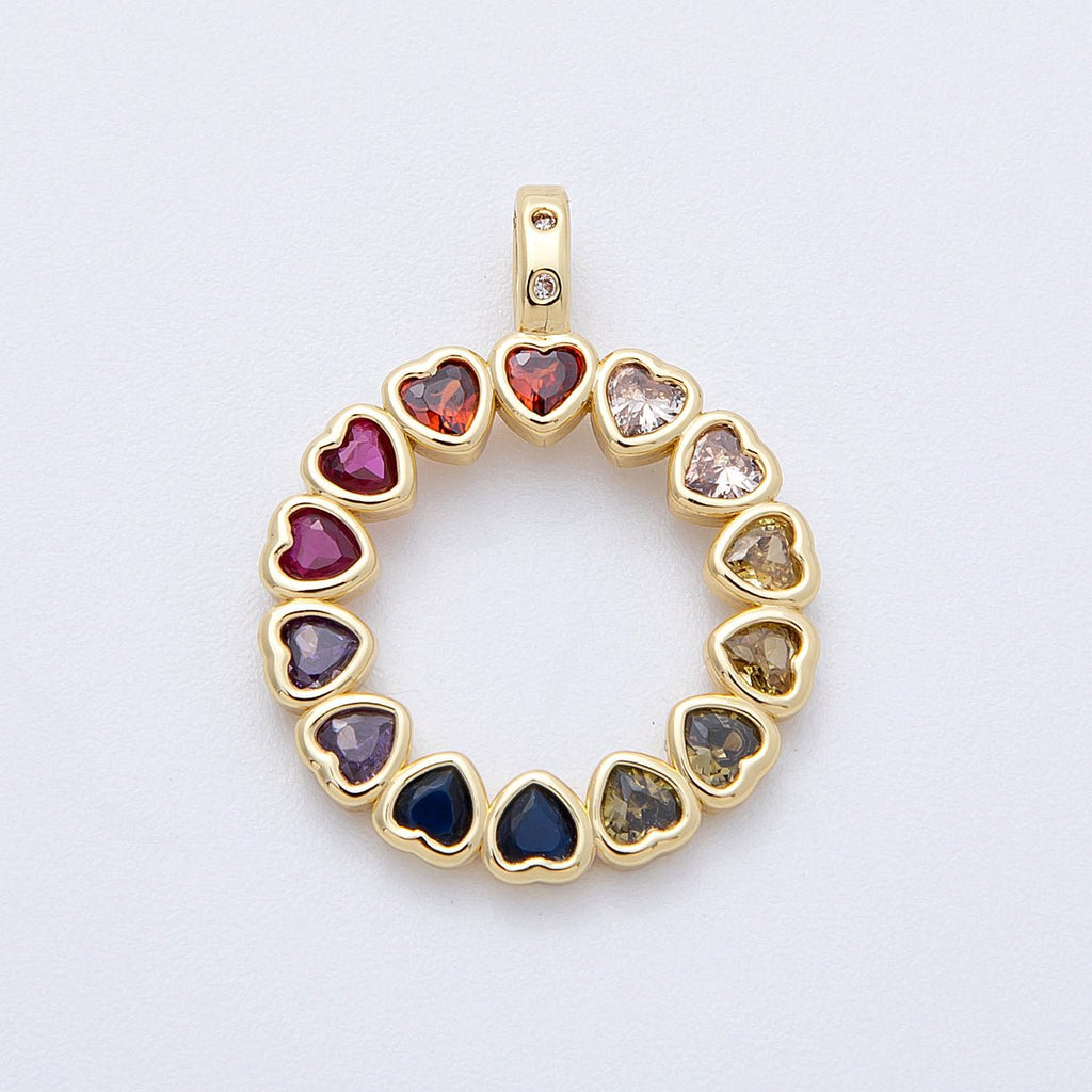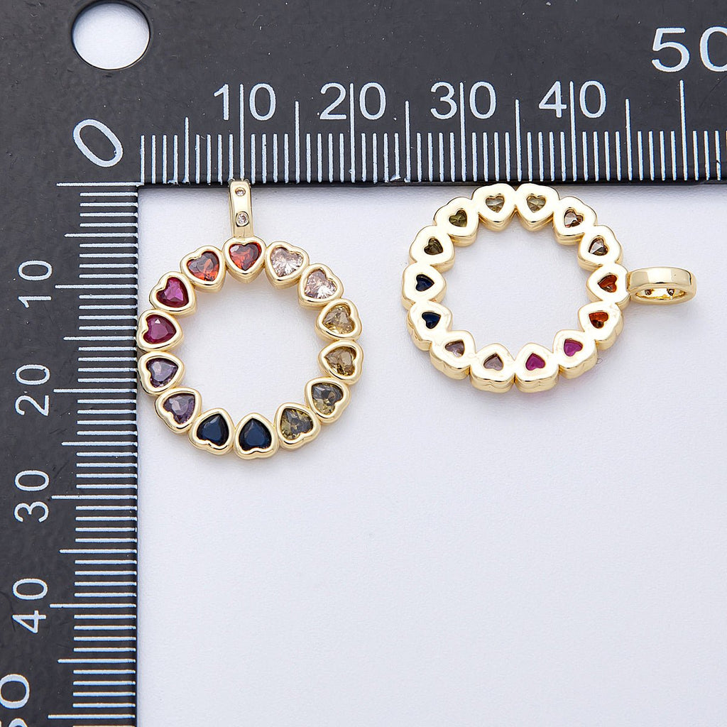 16K Gold Filled 26mm Multicolor CZ Heart Open Round Pendant | Charms-00124