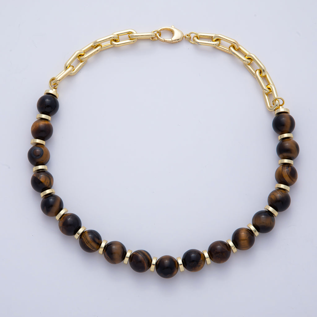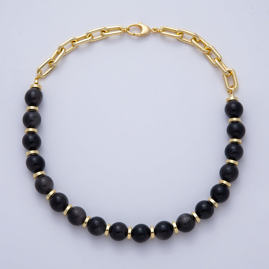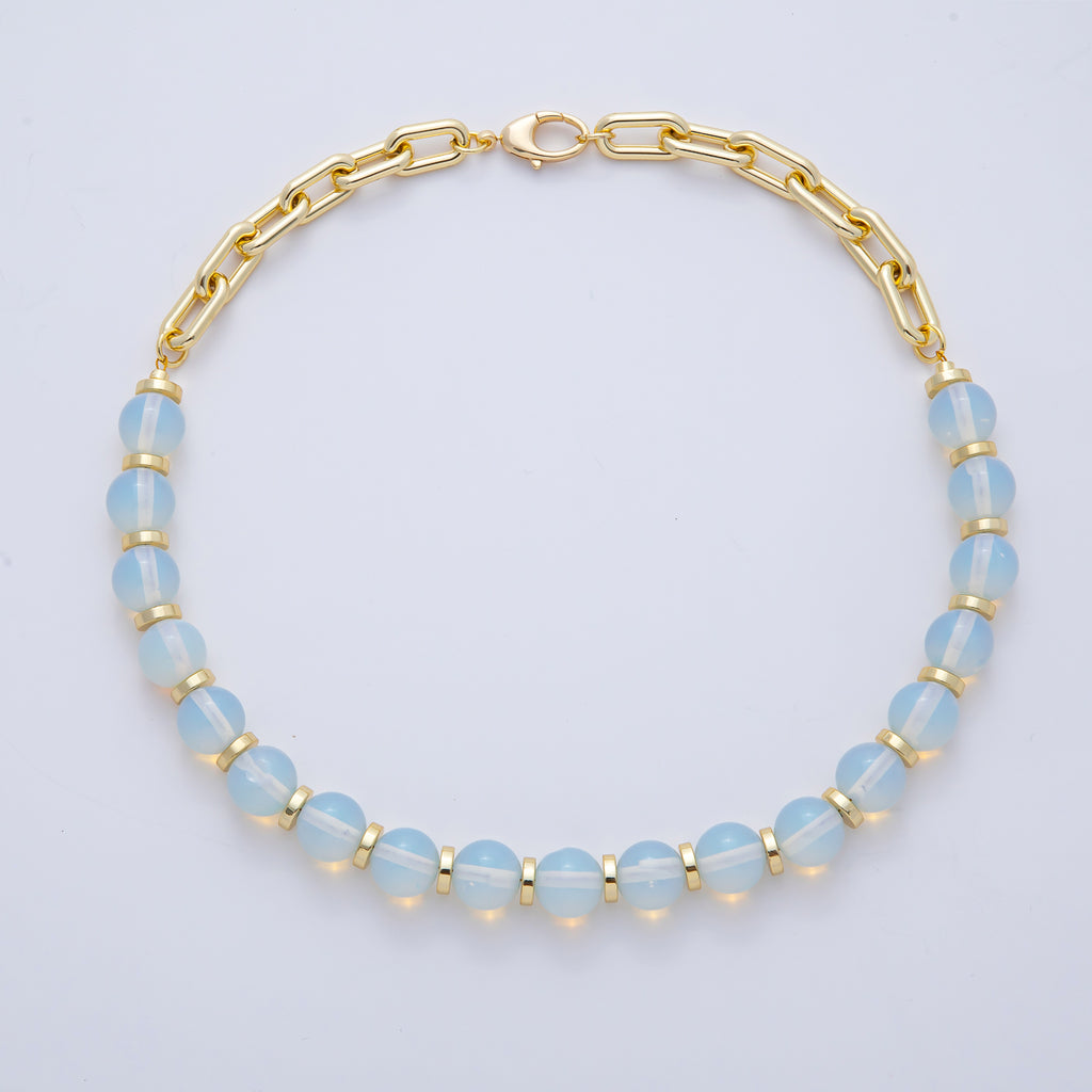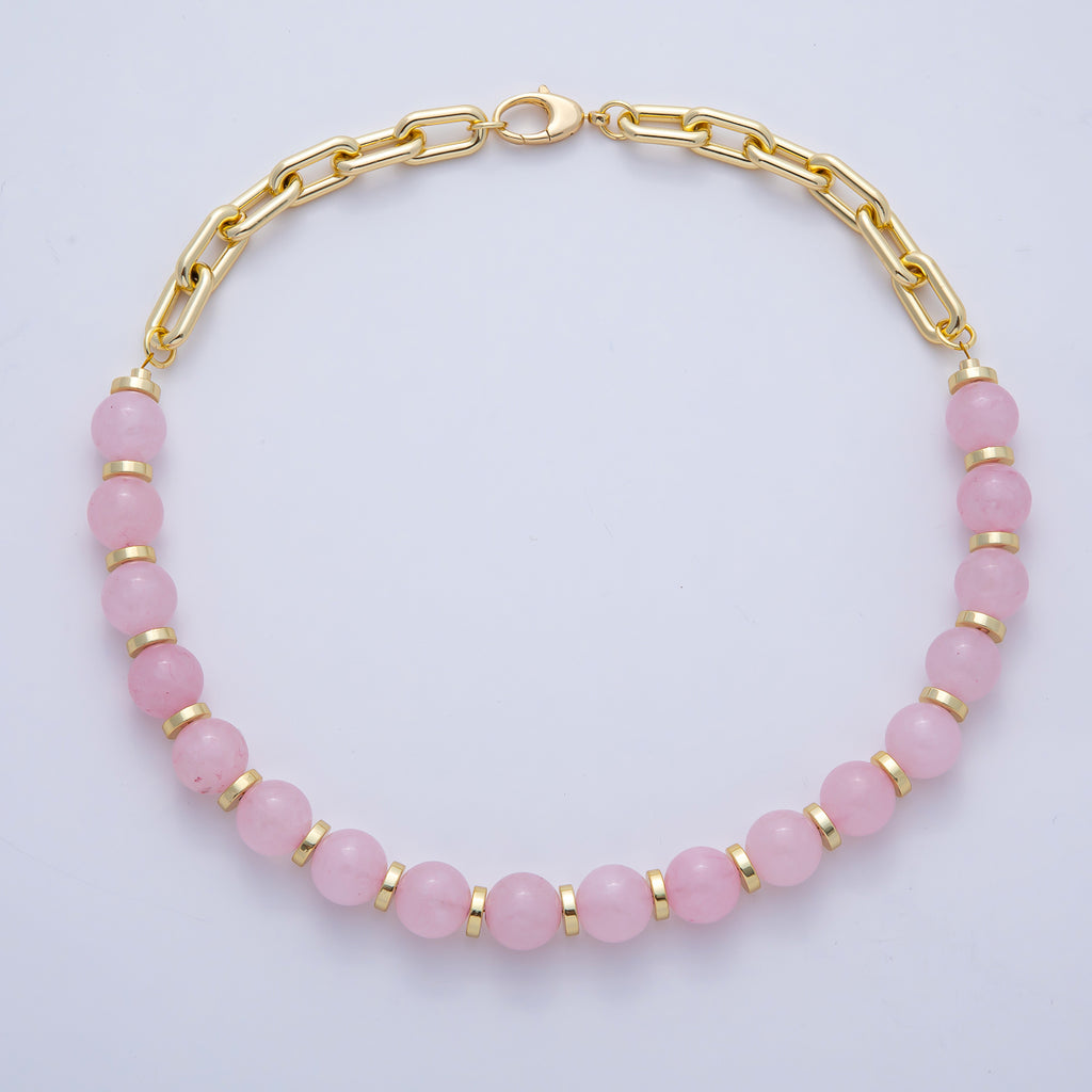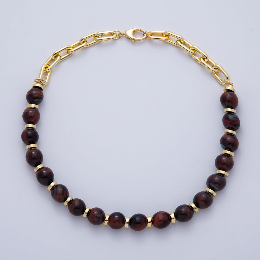 18K Gold Filled 12mm Natural Gemstone Paperclip Half Chain 17 Inch Necklace | WA-3486 ~ WA-3491