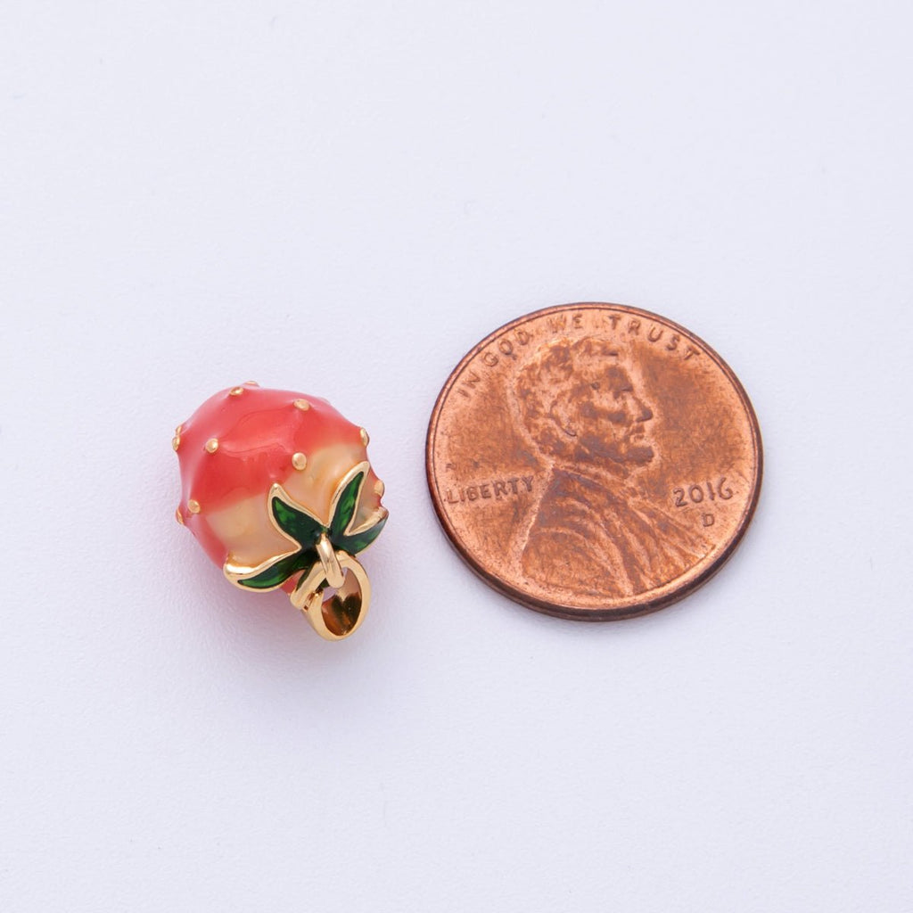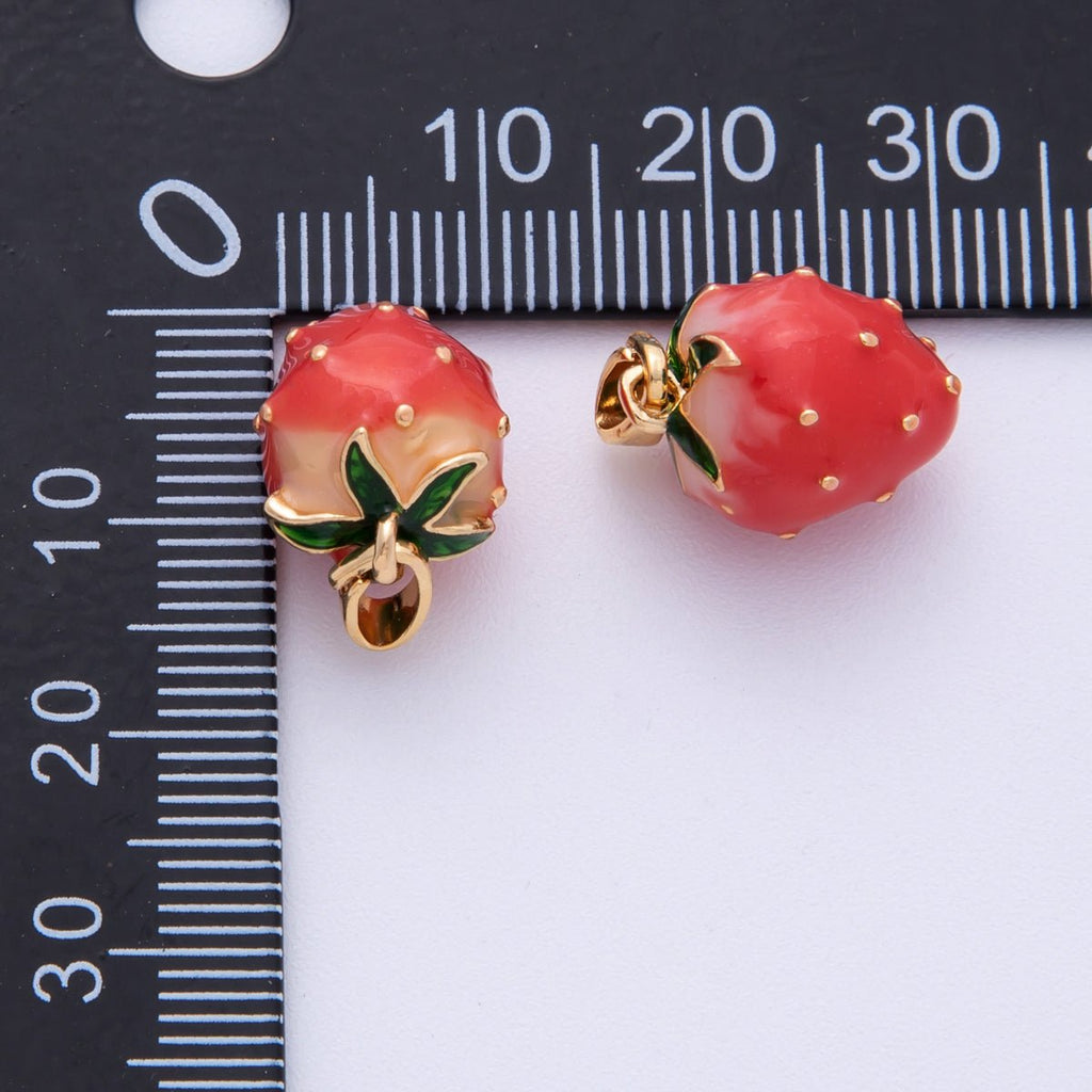 18K Gold Filled 15mm Ceramic Strawberry Fruit 3D Multidimensional Pendant | Charms-00114