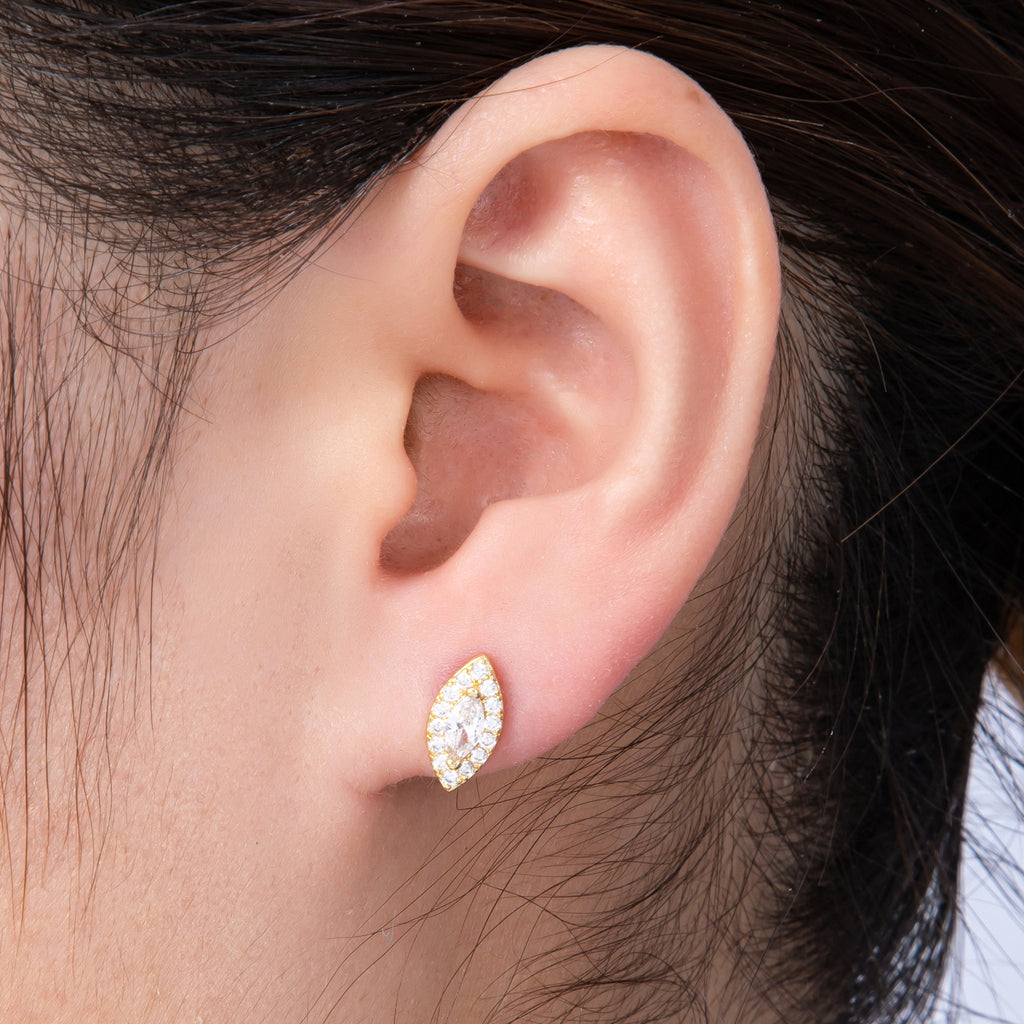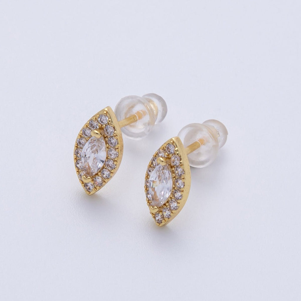 14K Gold Filled 15mm Clear CZ Marquise Micro Paved Stud Earrings in Gold & Silver | Earrings-00048 Earrings-00049