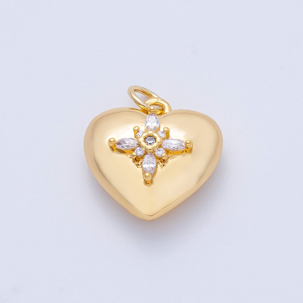 18K Gold Filled 15mm Clear CZ Religious Cross Heart 3D Multidimensional Charm | Charms-00052