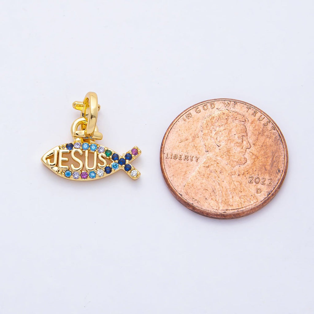 18K Gold Filled 15mm Ichthys Jesus Fish Religious Christian Multi Color Charm | AF1464