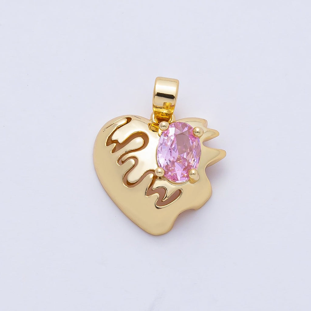 18K Gold Filled 15mm Pulse Heartbeat with Pink Oval CZ Heart Pendant Charm | AF1178