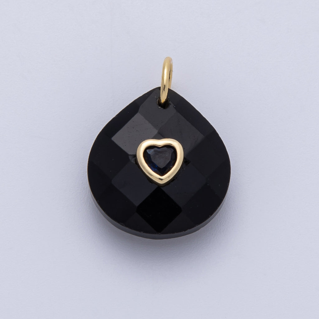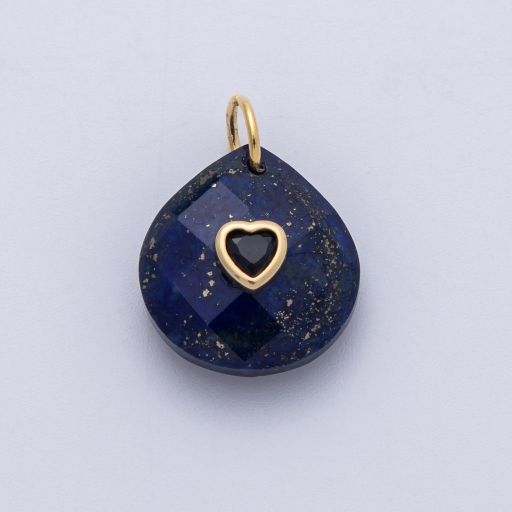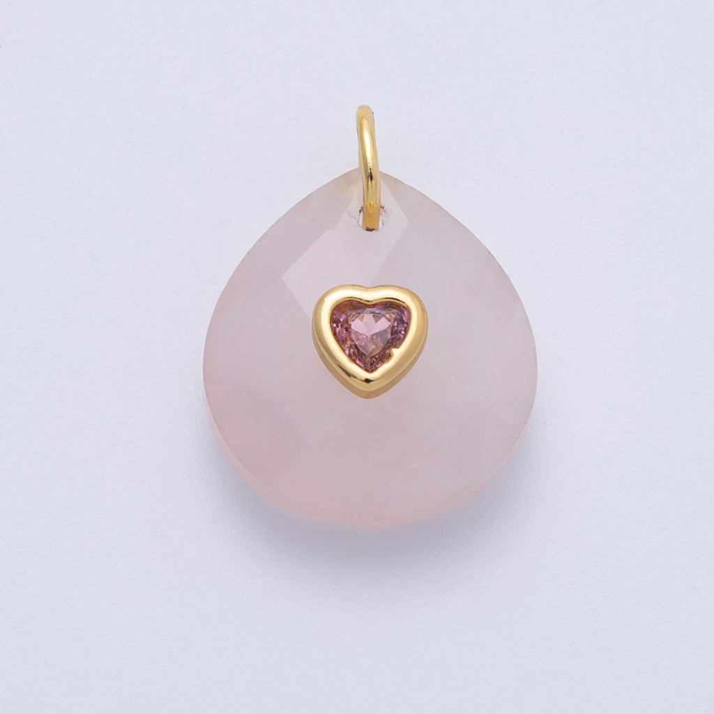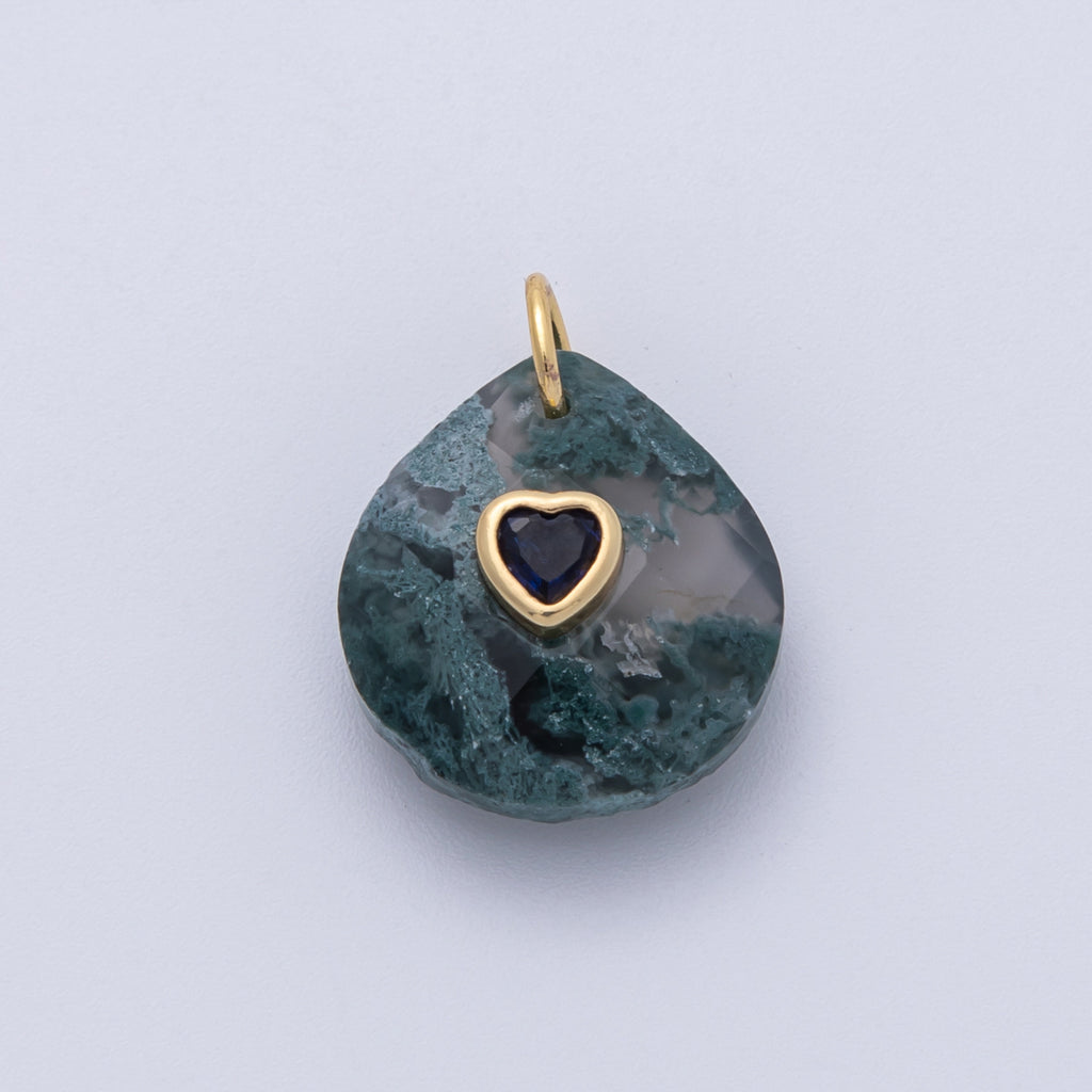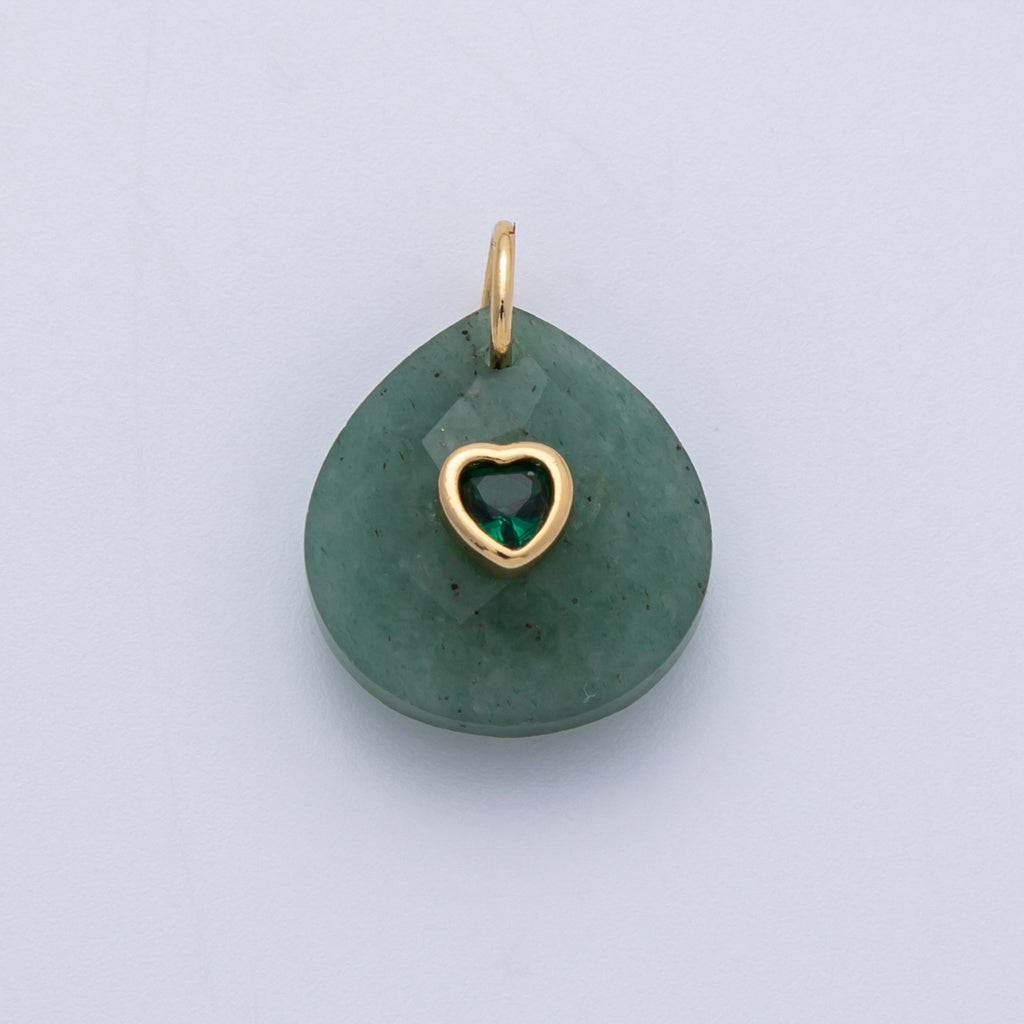 18K Gold Filled 17.8mm Heart Embedded Natural Gemstone Teardrop Charm | CHARMS-00002-CHARMS-00014