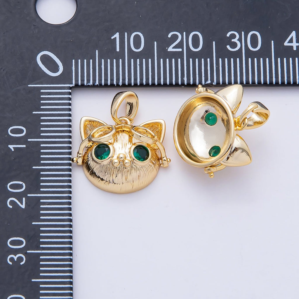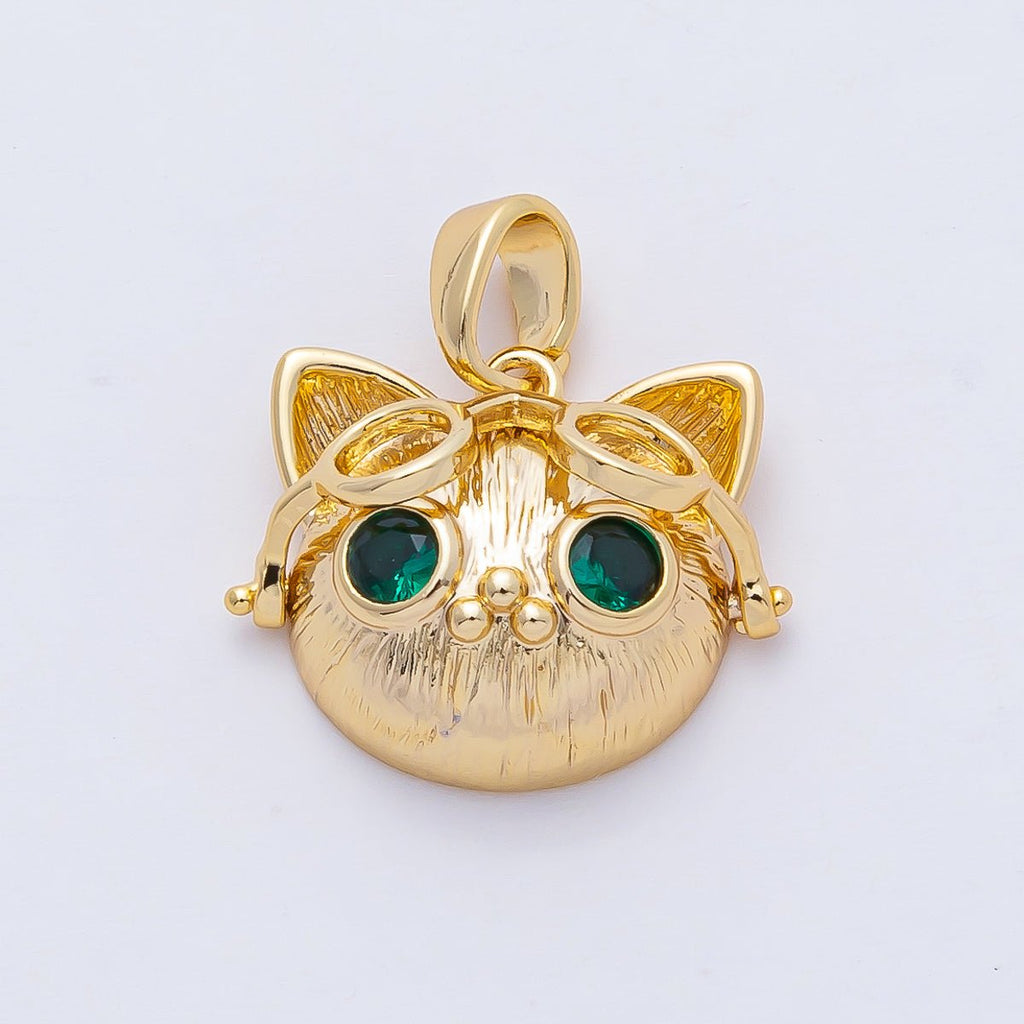 18K Gold Filled 17mm Emerald Green Cool Cat in Goggles Glasses Animal Pendant Charm | AF1176