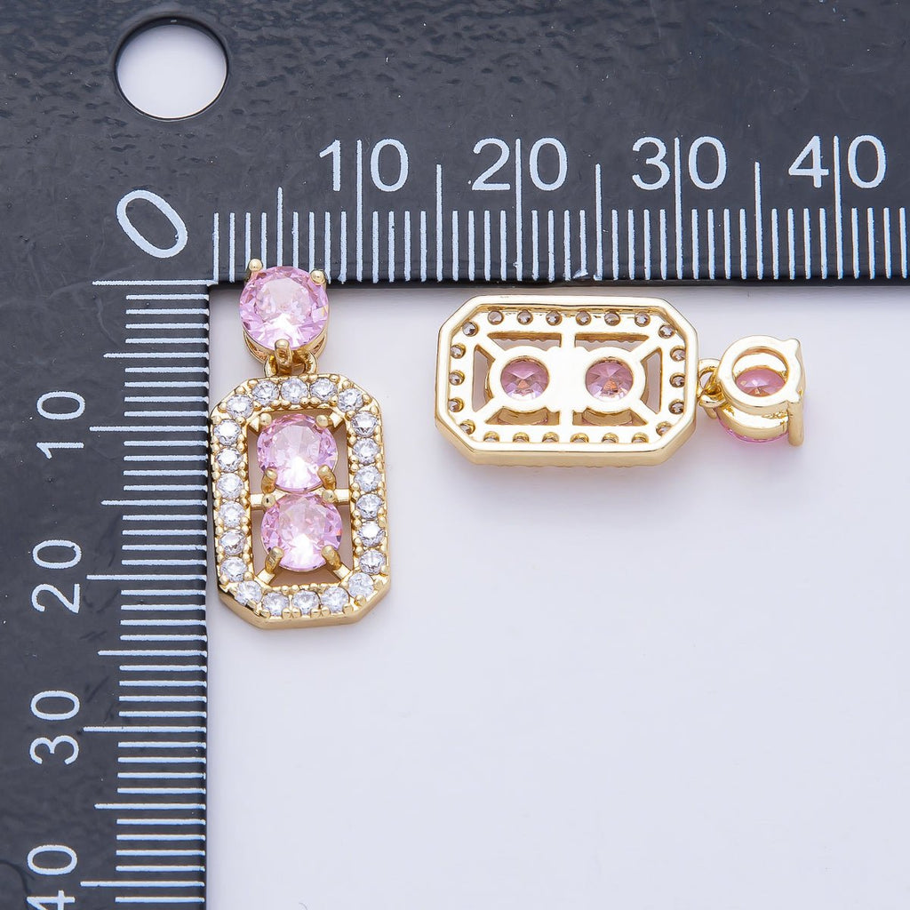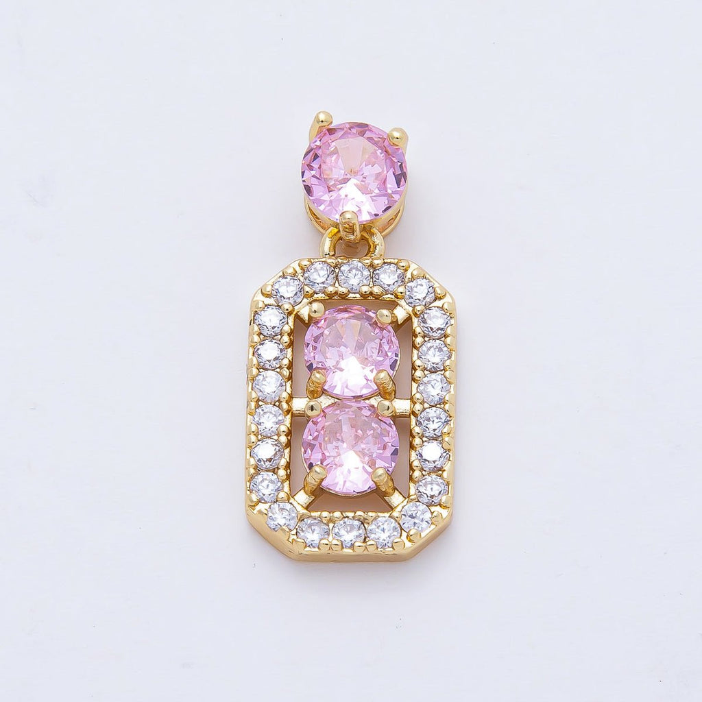 18K Gold Filled 17mm Pink CZ Square Geometric Pendant | AF1184