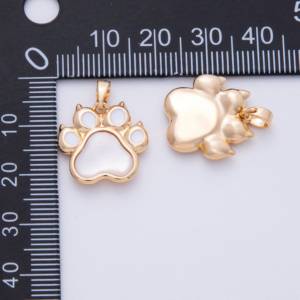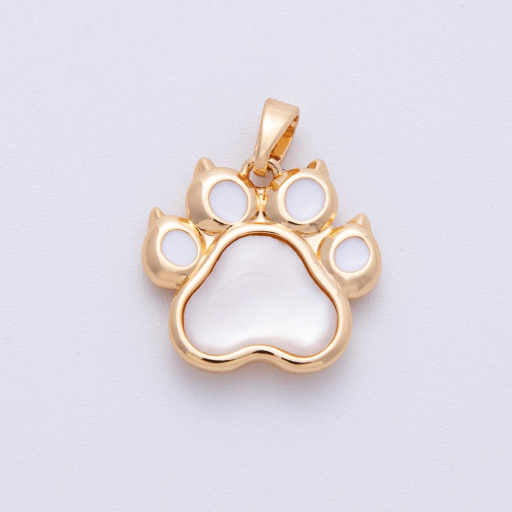 18K Gold Filled 17mm Shell Pearl Pet Paw Print Pendant | Charms-00096